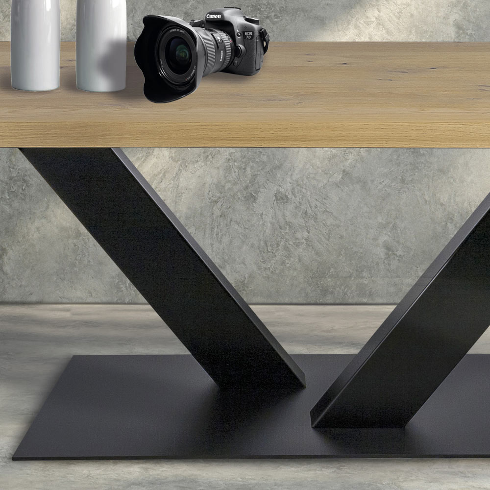 Holztisch mit furnierter Asteiche und Metallbasis Made in Italy.