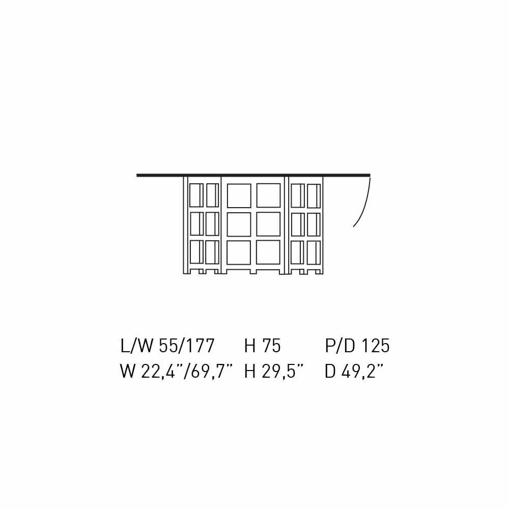 Esstisch komplett in Italien hergestellt mit Tischplatte und Struktur aus schwarz lackiertem Eschenholz. Ein Möbelstück mit einem originellen Stil, wenn auch in seiner extremen Einfachheit. Seine Ästhetik zeichnet sich durch die besondere Basis aus, die aus geometrischen Formen und Merkmalen besteht, die dem Tisch ein Gefühl von Raffinesse und Innovation für ein exklusives Ergebnis mit starker visueller Wirkung verleihen. Seine Besonderheit ist die beidseitig verstellbare Platte, die es Ihnen ermöglicht, einen Tisch mit kleineren Abmessungen zu erhalten, ideal für diejenigen, die keine großen Räume zur Verfügung haben, aber auf jeden Fall eine ausreichende Fläche benötigen, um Freunde und Verwandte für ein wunderbares Mittag- und Abendessen unterzubringen mit Freunden.