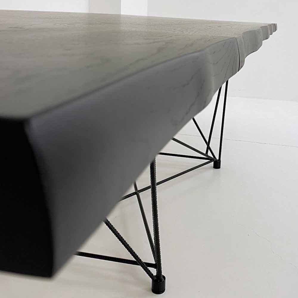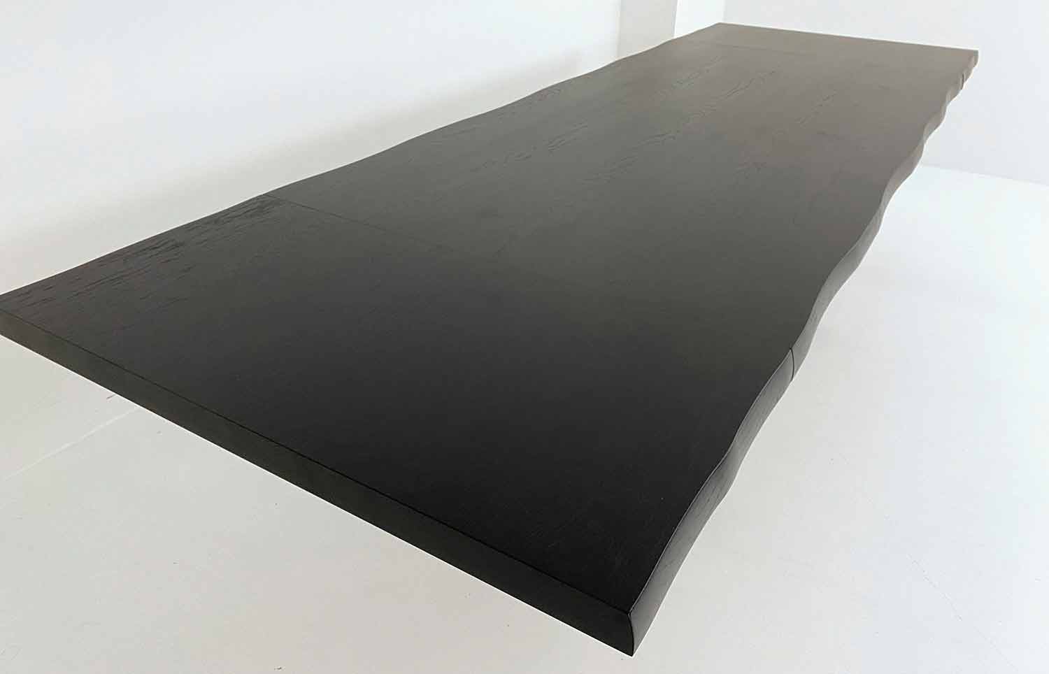 Tischplatte aus fossilem Carbon-Eichenfurnier – Stärke 50 mm.