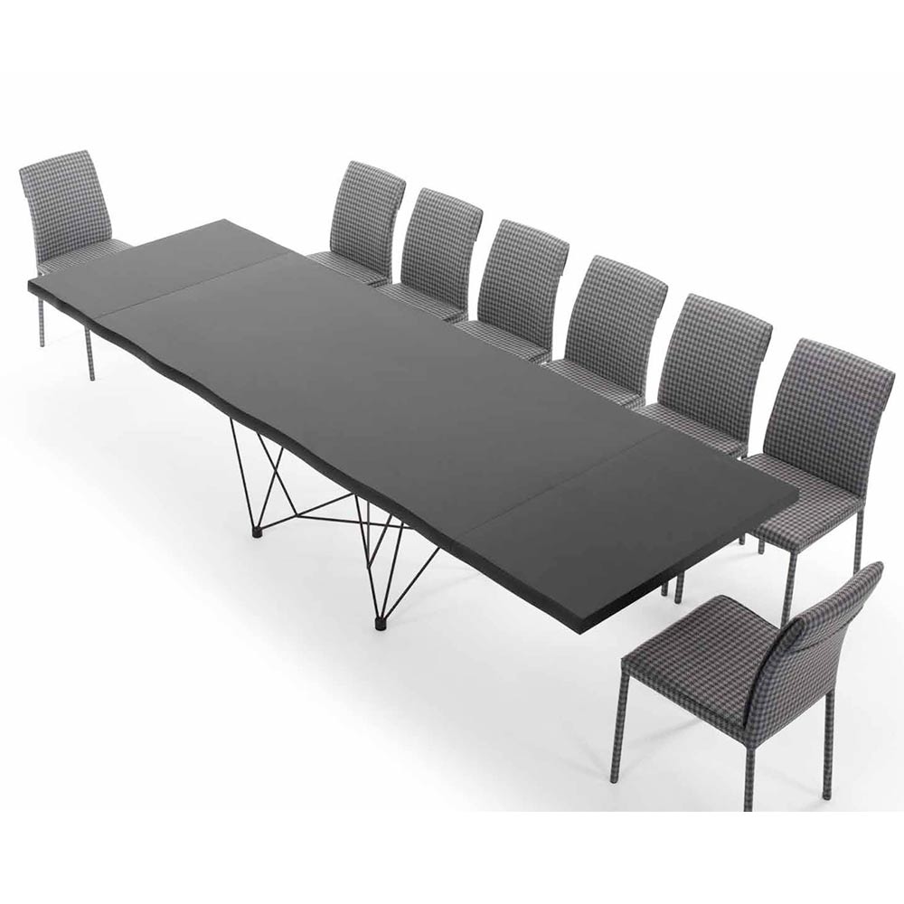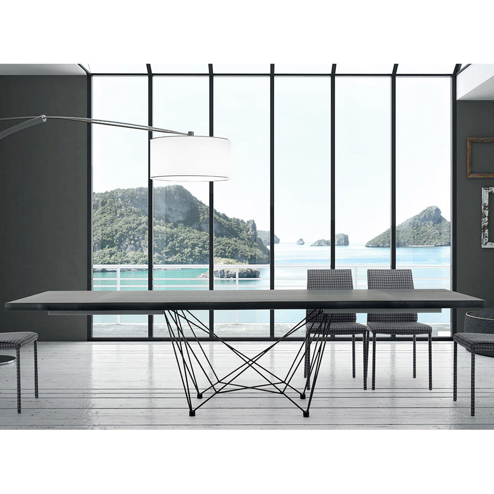 Moderner ausziehbarer Tisch bis zu 300 cm mit furnierter Holzplatte und schwarzem Stahlgestell, hergestellt in Italien.