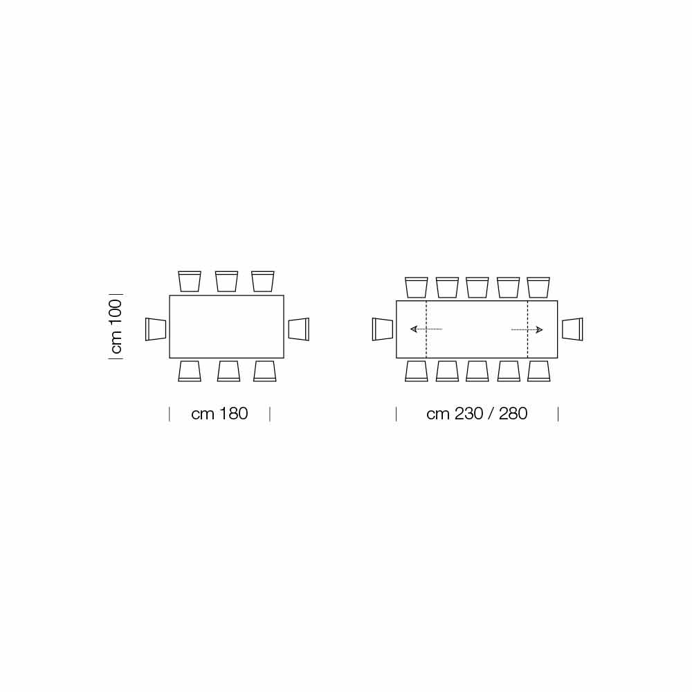 L 180 (280) x T 100 x H 75,8 cm 12-Sitzer ausziehbar mit 2 externen 50-cm-Verlängerungen;