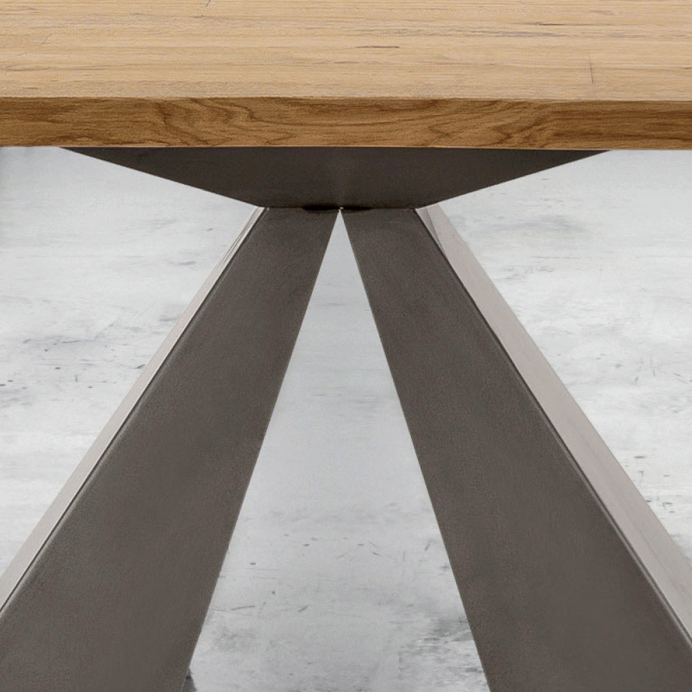 Ausziehbarer Küchentisch aus furniertem Holz und Stahlgestell, handgefertigt in Italien.