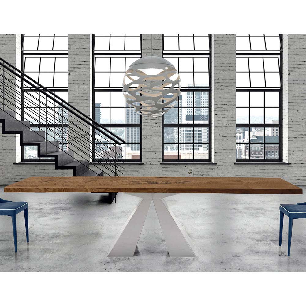 Der ausziehbare Esstisch Dalmata zeichnet sich durch ein stets raffiniertes und innovatives Design aus, das sich perfekt in Ihren Alltag integrieren lässt. Handgefertigt in Italien mit hochwertigen Materialien und 100 % Made in Italy. Bestehend aus einer furnierten Holzplatte mit unregelmäßig entrindeter Kanteund einem Sockel aus Nerz oder weiß lackiertem Stahl.