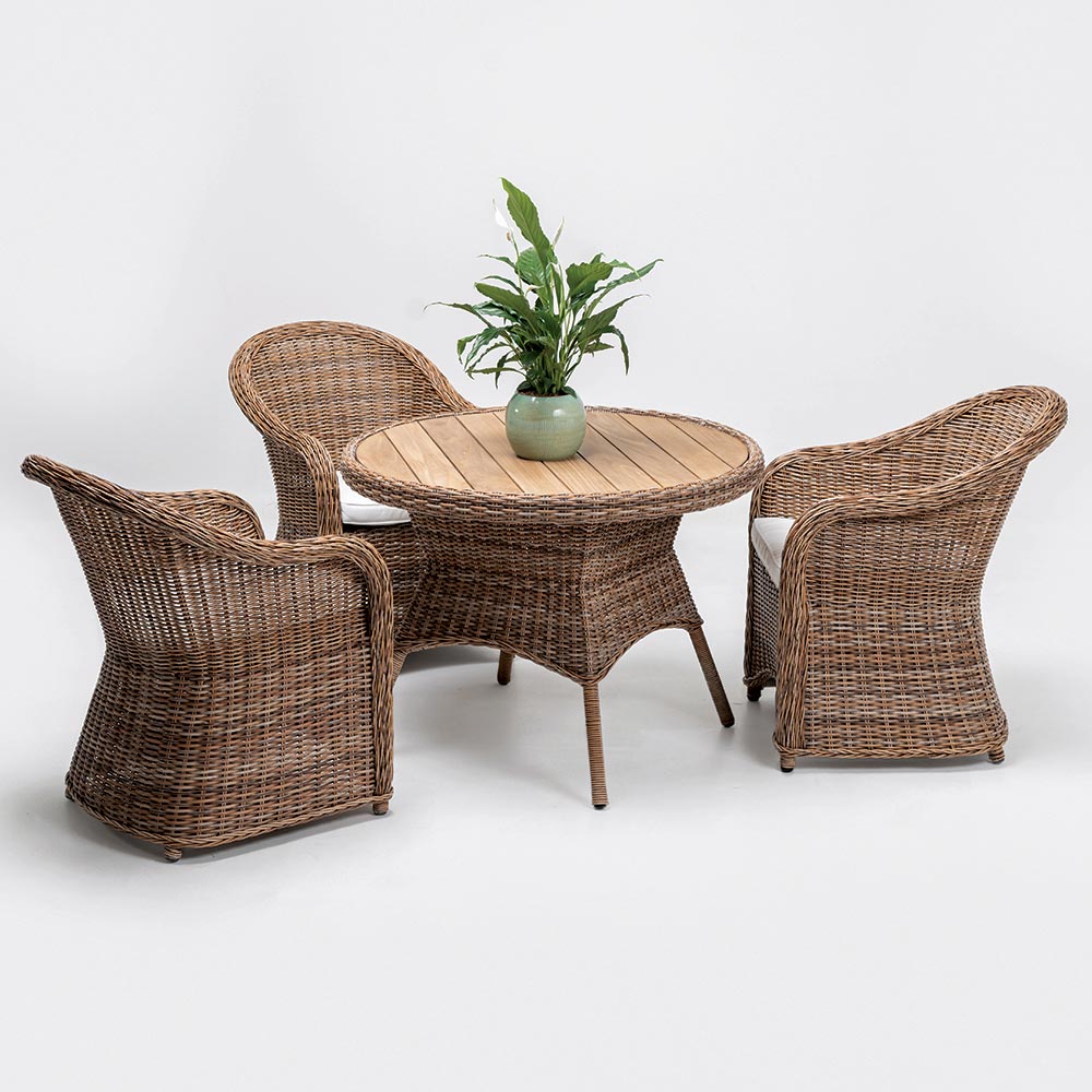 Die Polyrattanfasern sind die hochwertigsten auf dem Markt (VIRO/REHAU). Sie bestehen aus speziellem Polyethylen hoher Dichte (HDPE) und sind zertifiziert, um selbst extremen Wetter- und Klimabedingungen standzuhalten, ohne nennenswerte strukturelle Schäden zu erleiden und ihre Farbechtheit zu bewahren. Bei Bedarf empfehlen wir die Verwendung von Mikrofasertüchern, neutralen Reinigungsmitteln und warmem Wasser zur Reinigung dieser Fasern.