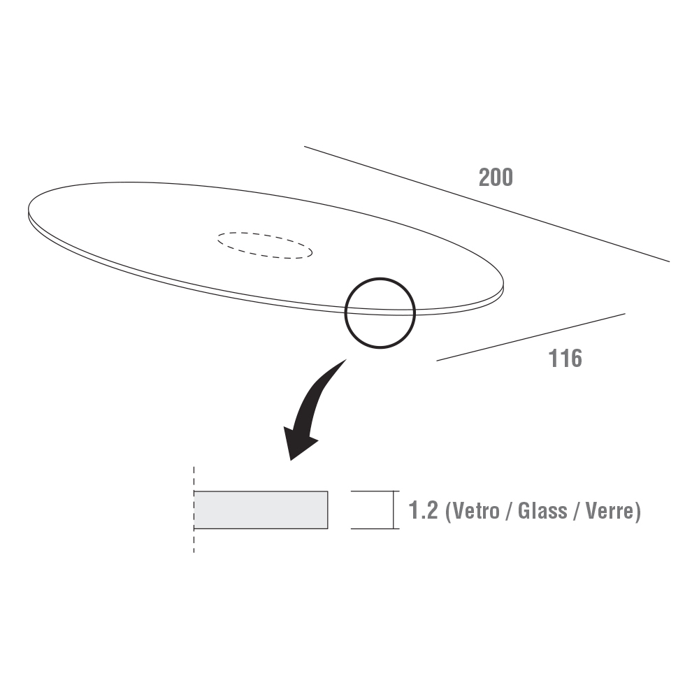 gehärtetem Glas (Dicke 12 mm) matt lackiert und Sockel aus