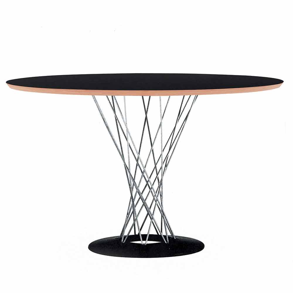 Esstisch mit runder Platte aus schwarzem Laminat Made in Italy.