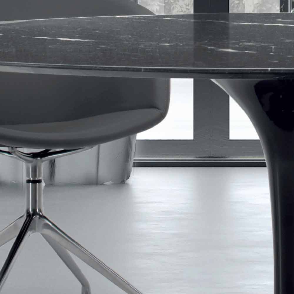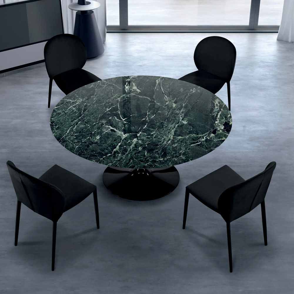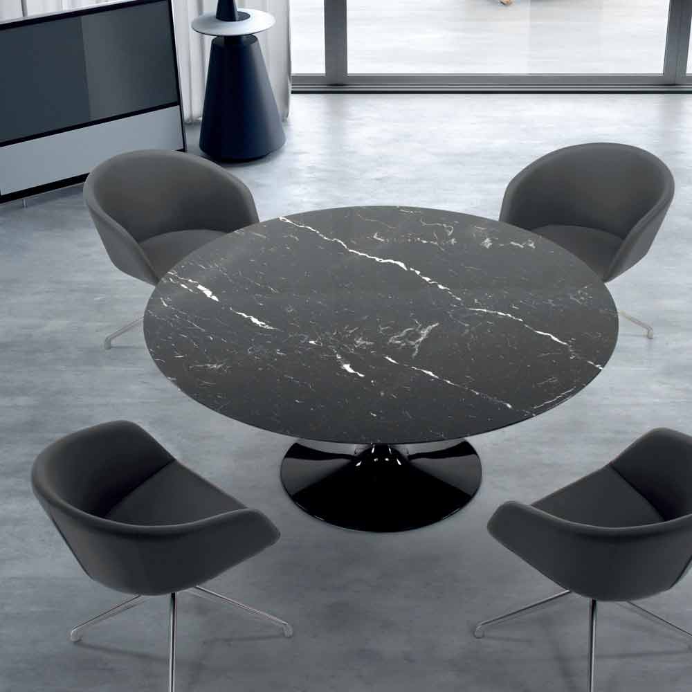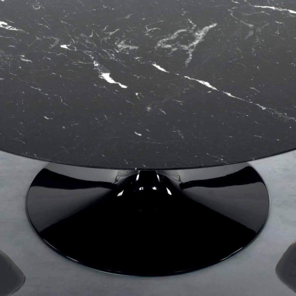 Moderner runder Tisch mit Carrara- oder Nero-Marquinia-Marmorplatte, handgefertigt in Italien.