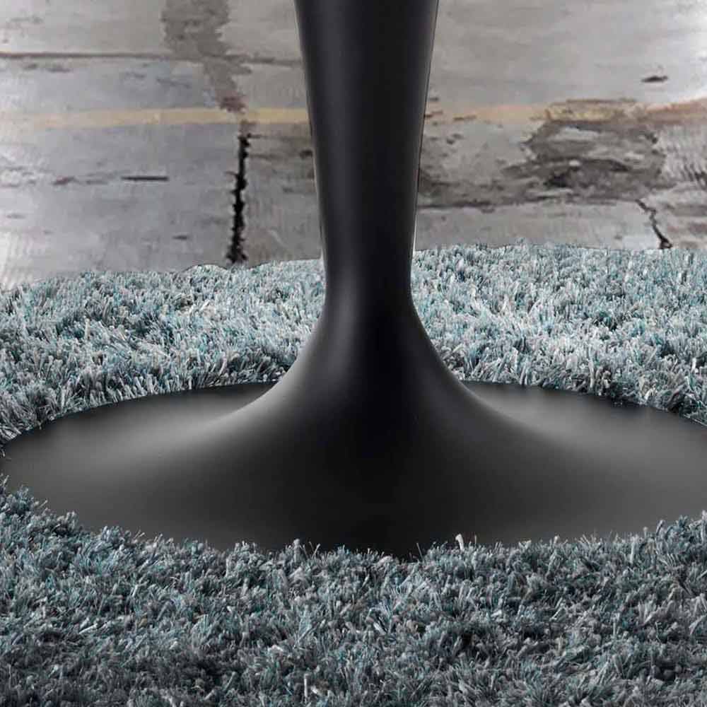 Der Tischgestell ist aus mattschwarz lackiertem Stahl.