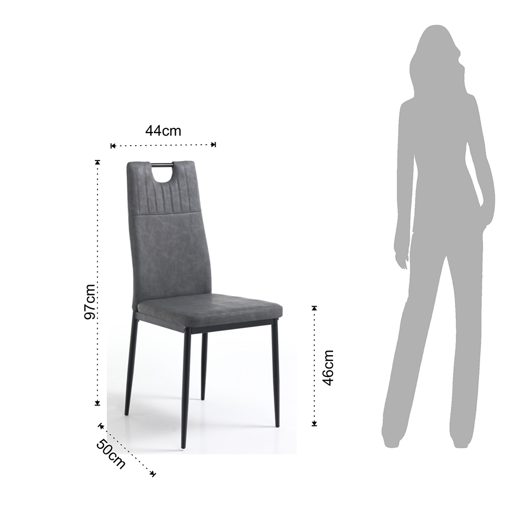 Stuhl für Esszimmer oder Küche aus mattschwarz lackiertem Metall mit Sitz aus Kunstleder mit Antikeffekt . Dank seines einzigartigen und raffinierten Designs vervollständigt es die Einrichtung des Raumes mit Geschmack und Raffinesse, ohne den funktionalen Aspekt zu vernachlässigen. Seine Formgebung bietet in der Tat einen besonders weichen, bequemen und einladenden Sitz, wodurch die praktische und die ästhetische Seite auf hervorragende Weise für ein exklusives und Designergebnis kombiniert werden.
