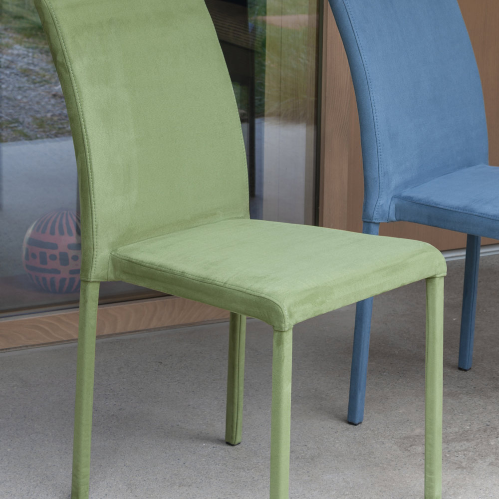 Stapelbarer Esszimmerstuhl bestehend aus einem Metallgestell, das mit wasserabweisendem farbigem Econabuk bezogen ist . Dieser Esszimmerstuhl ist das Ergebnis einfacher und hochwertiger Materialien, die dazu beitragen, ein perfektes Produkt für jede Umgebung zu schaffen. Dieser Stuhl zeichnet sich durch ein schlankes und elegantes Design aus und hat einfache und geschwungene Linien in Kombination mit einem zarten Stil .