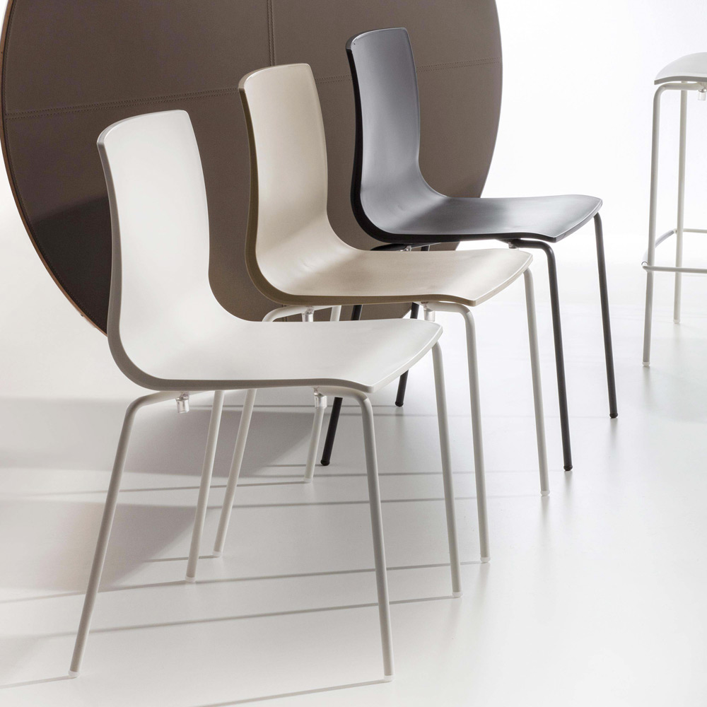Moderner Stuhl mit Sitz aus Polypropylen und Sockel aus lackiertem Metall . Einfachheit und Wesentlichkeit sind die Schlüsselwörter, die diesen Stuhl am besten beschreiben, ideal für Ihr Esszimmer oder Ihre Küche. Jeder Abschnitt seiner Struktur ist linear und sauber, Eigenschaften, die es ihm ermöglichen, sich dank der vorgeschlagenen nüchternen und diskreten Oberflächen an jede Einrichtungssituation anzupassen. Dieser Stuhl ist daher die perfekte Idee für diejenigen, die ein funktionales und modernes Produkt suchen, das eine hervorragende Festigkeit sowie eine hervorragende ästhetische Seite gewährleistet, die, so einfach sie auch sein mag, eine perfekte Harmonie zwischen den Stilen schafft. in dem Zimmer.