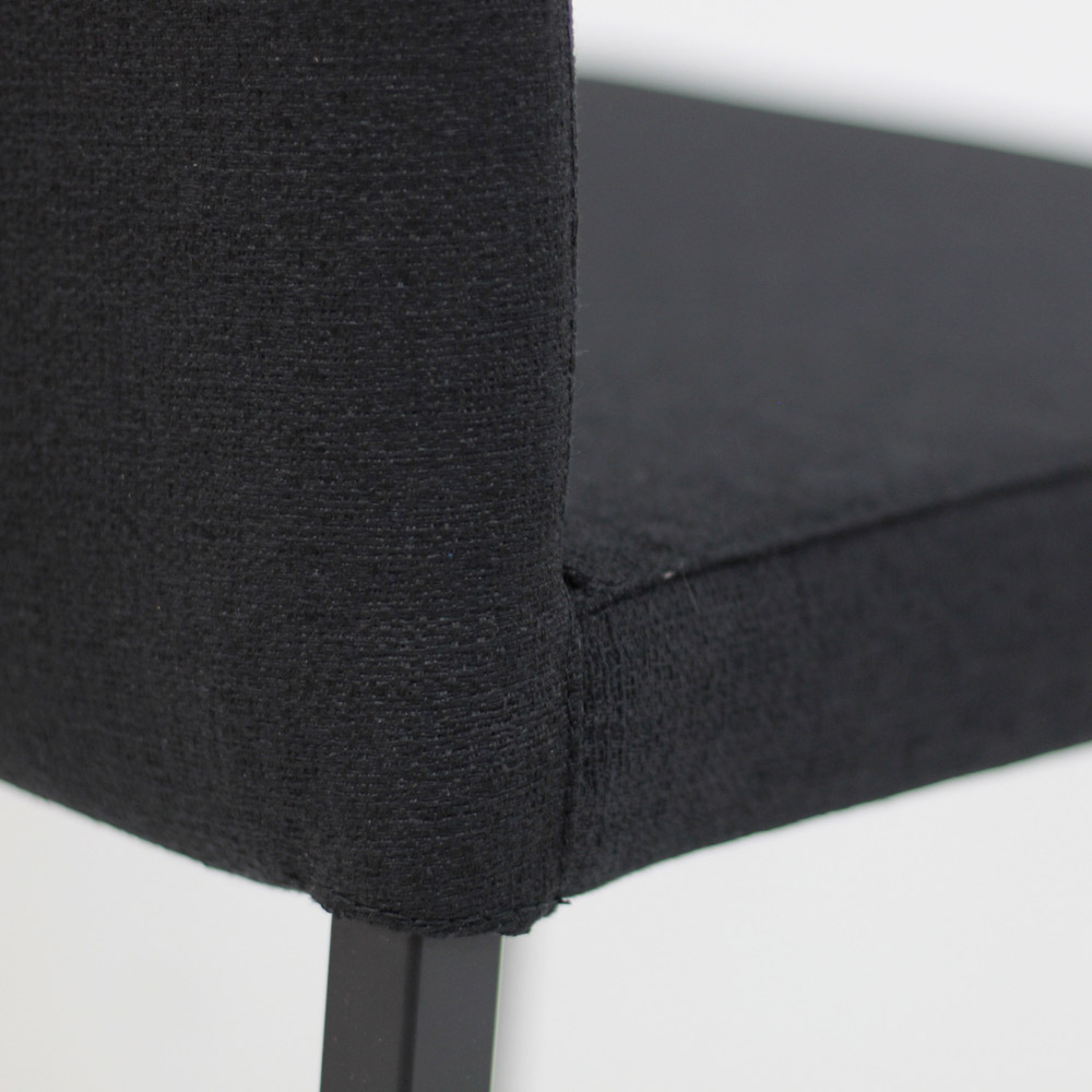 Komplett in Italien hergestellterWohnzimmerstuhl mit hoher Rückenlehne, schwarz lackierten Beinen und Sitz aus schwarzem Struktura-Stoff, perfekt für zu Hause und geeignet für den Objektbereich. Dieses Einrichtungsset ist eine perfekte Idee für alle, die dem Raum eine besondere und moderne Note verleihen möchten, ohne auf die Funktionalität und den Komfort des weichen und bequemen Sitzes zu verzichten. Die verwendeten Materialien garantieren Qualität und Langlebigkeit und machen den Stuhl für alle Einsatzsituationen und -anlässe nutzbar.