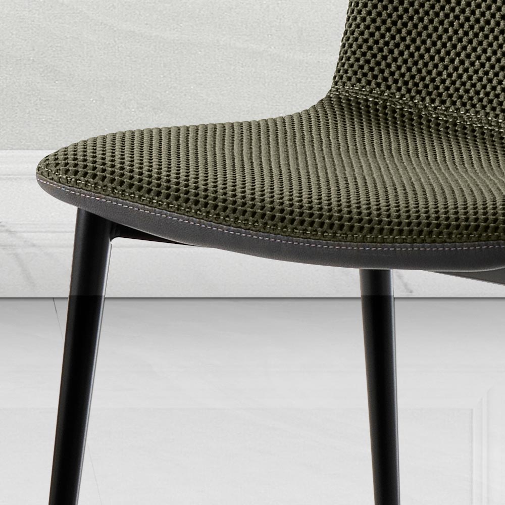 Die dünnen, aber stabilen Metallbeine strahlen Stärke und Modernität aus und schaffen eine perfekte Balance zwischen optischer Leichtigkeit und struktureller Stabilität. Die Materialauswahl und das durchdachte Design sorgen für Komfort und Langlebigkeit und machen diesen Stuhl zu einer idealen Ergänzung sowohl für den privaten als auch für den professionellen Bereich.
