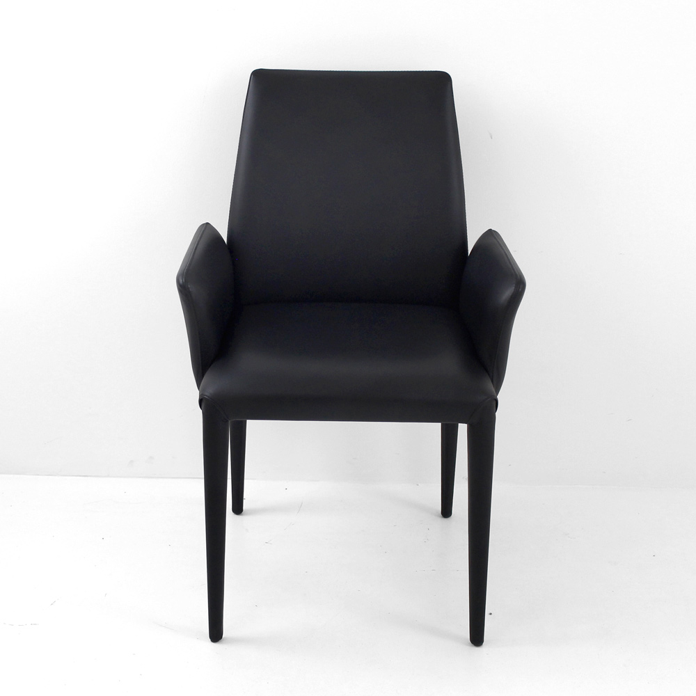 Wohnzimmerstuhl mit Armlehnen komplett Made in Italy mit vollständig mit schwarzem Leder bezogener Struktur .Sehr eleganter Stuhl, der jedem Wohnzimmer eine einzigartige und zeitlose Atmosphäre verleiht. Seine Form und Verarbeitung machen diesen Stuhl zu einem Unikat, das Funktionalität und Design vereint. Dank der verwendeten Materialien sind Qualität und Beständigkeit im Laufe der Zeit garantiert.