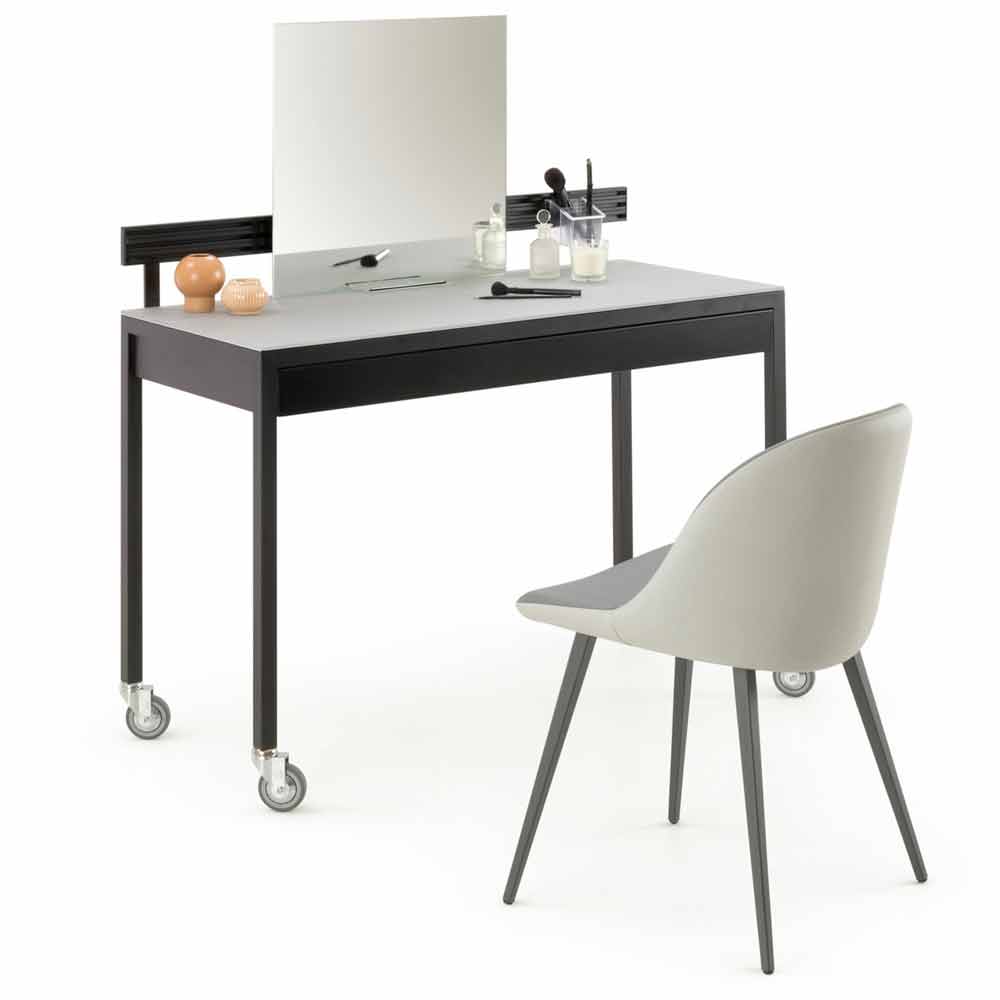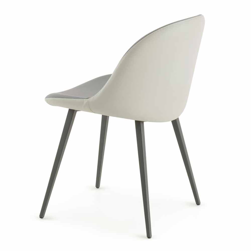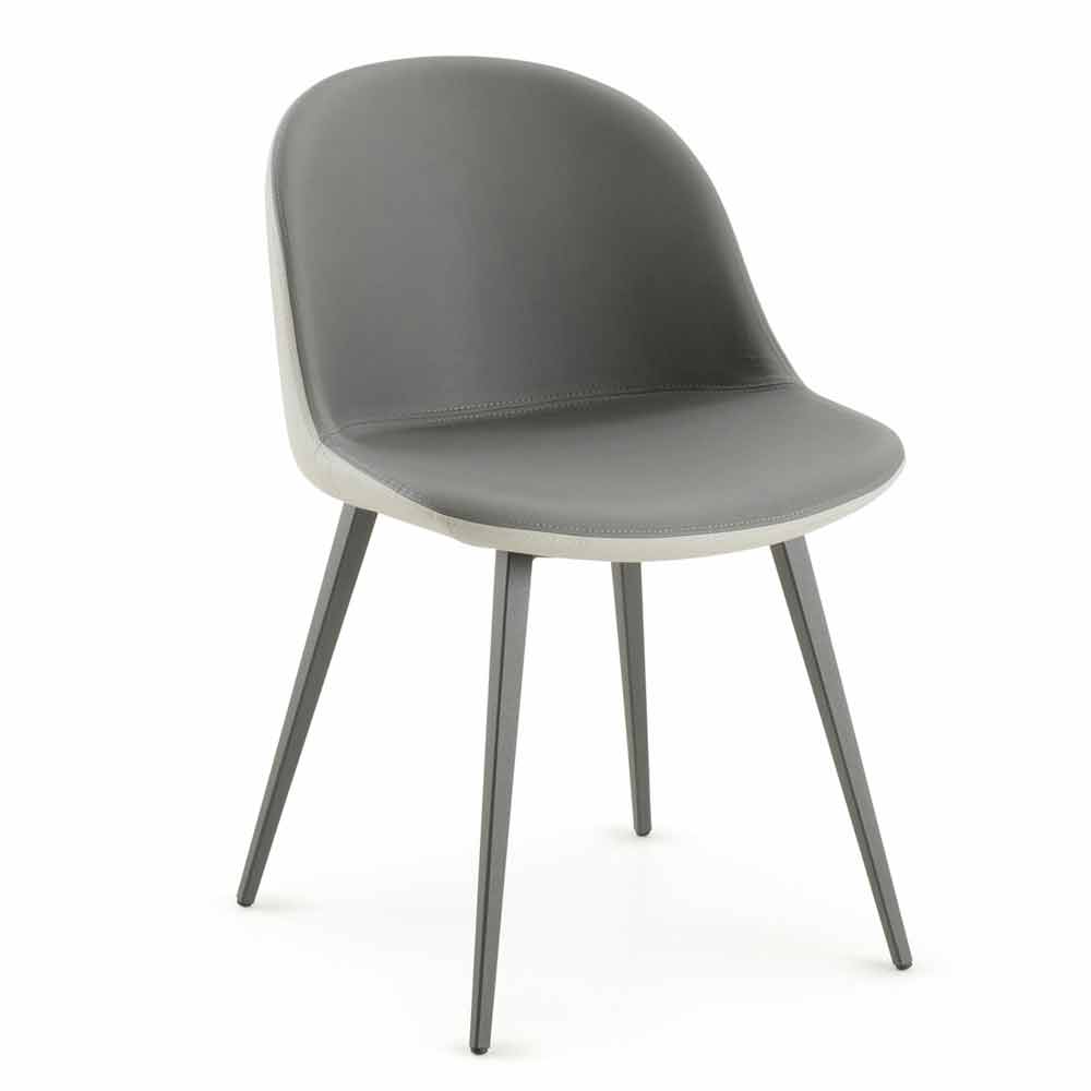 Eleganter Stuhl für Esszimmer oder Küche aus Italien mit einer Schale aus silbernem und anthrazitfarbenem Öko-Leder und einer Struktur aus graphitbemaltem Metall.