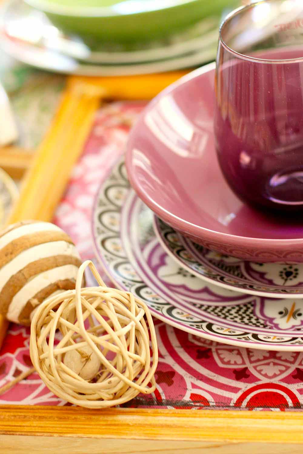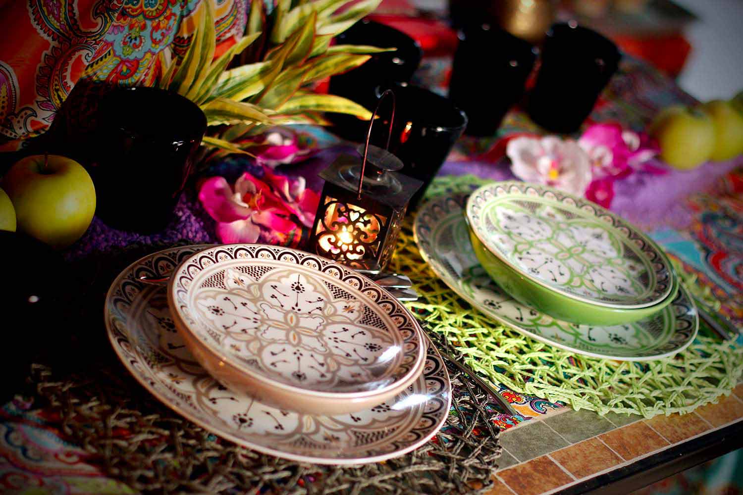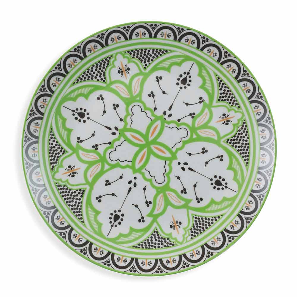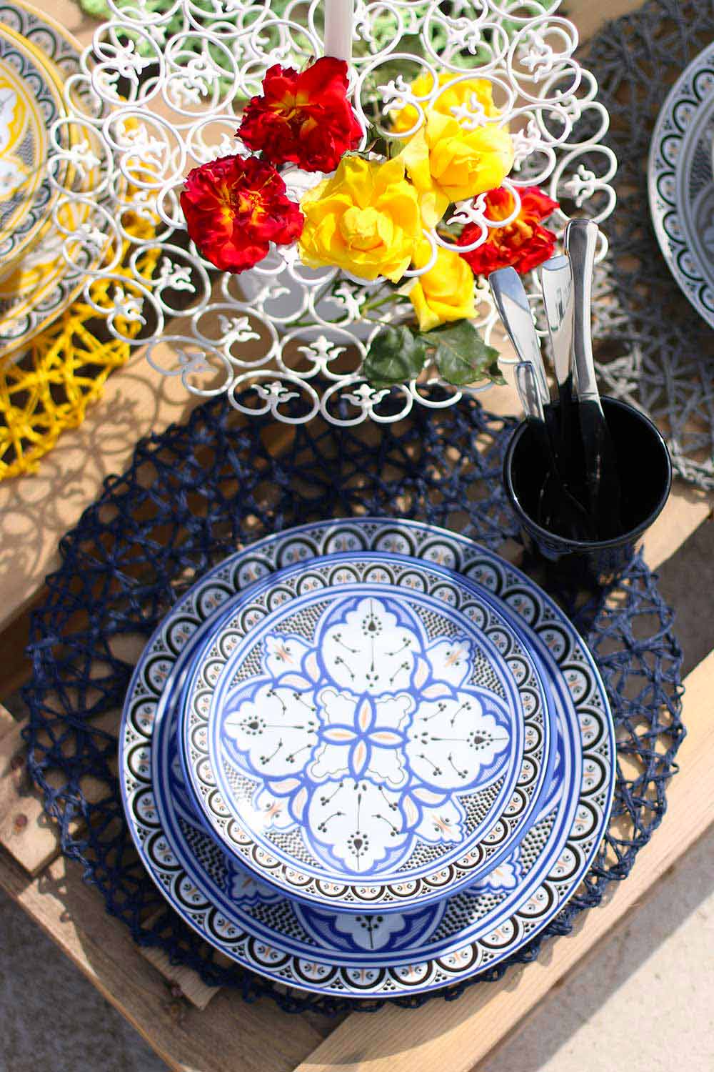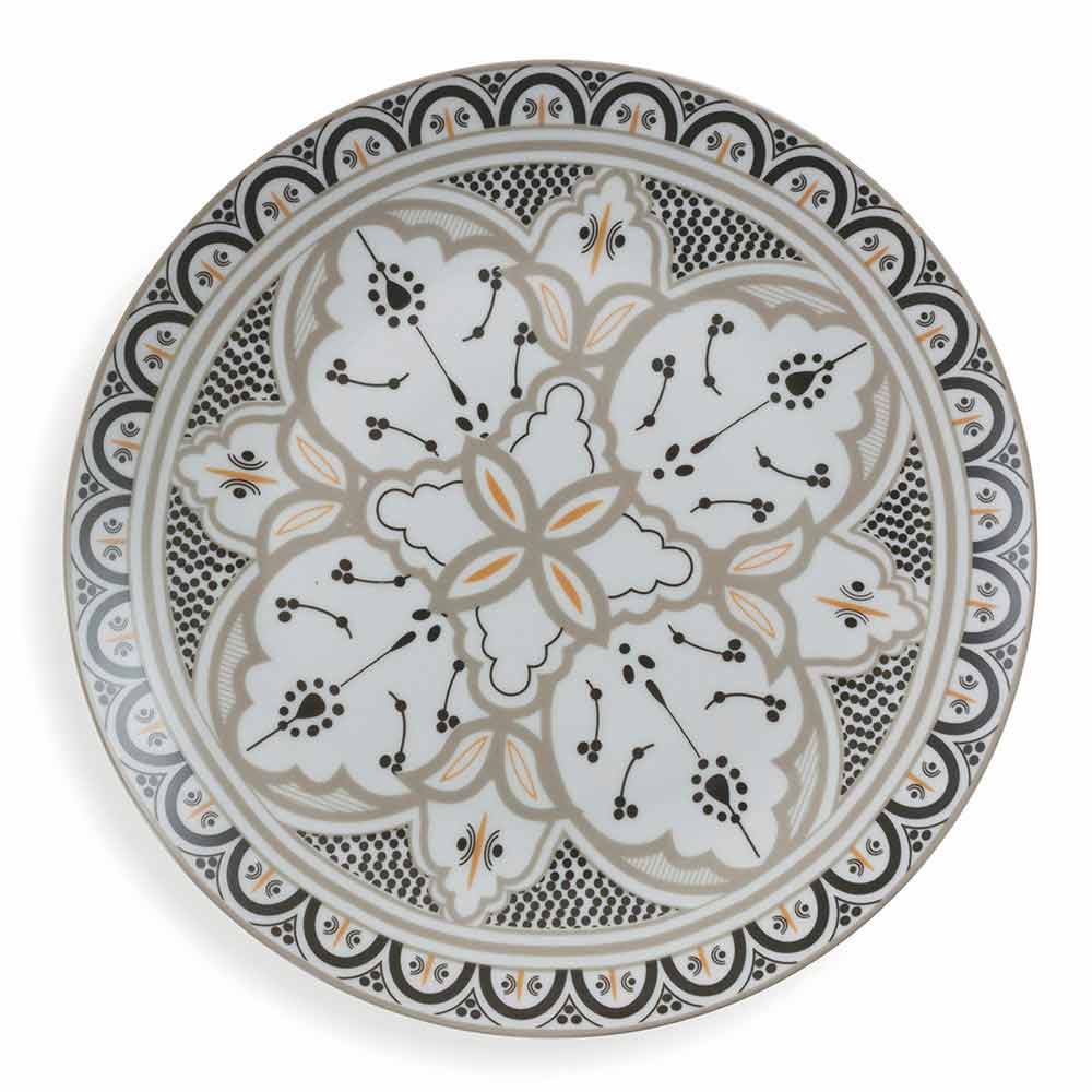 Der Stil dieses Kits, in perfekter Harmonie zwischen der orientalischen und der hispanischen und maurischen Kultur, ist ein klarer Hinweis auf die Geschichte der berühmten und eleganten marokkanischen Keramik mit geometrischen und raffinierten Designs, die jedem Gast eine andere Farbe zuschreiben als alle anderen , um die Philosophie zu symbolisieren, dass jeder auf andere Weise an Geselligkeit teilnimmt .