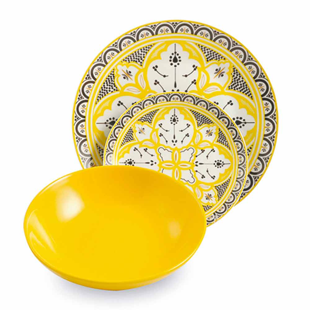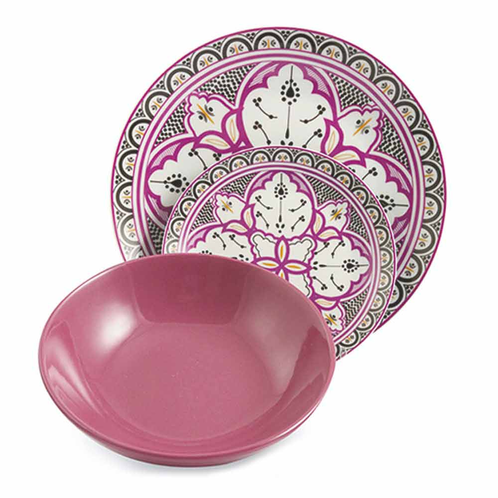 Ethnischer Geschirrservice aus Porzellan und farbigem und modernem Steinzeug 18 Stück - Fez