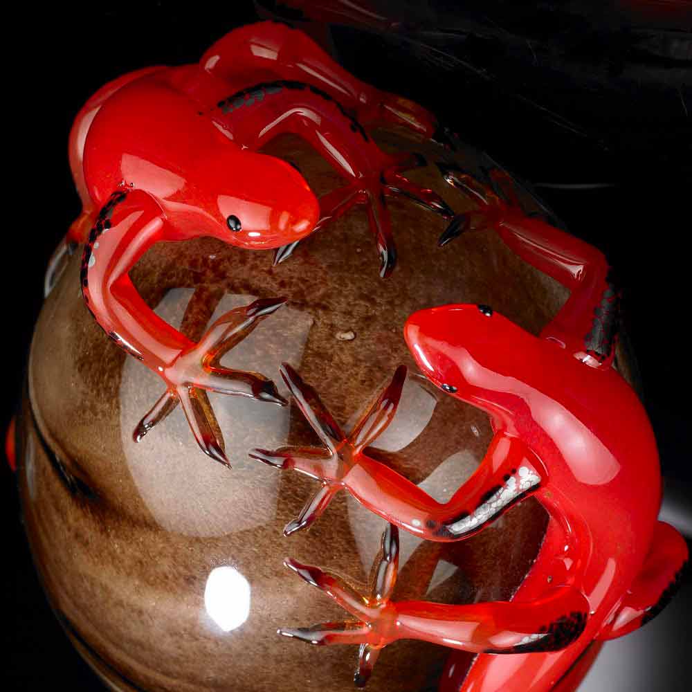 Dekorative eiförmige Glasstatue mit 2 Geckos Made in Italy, fein.