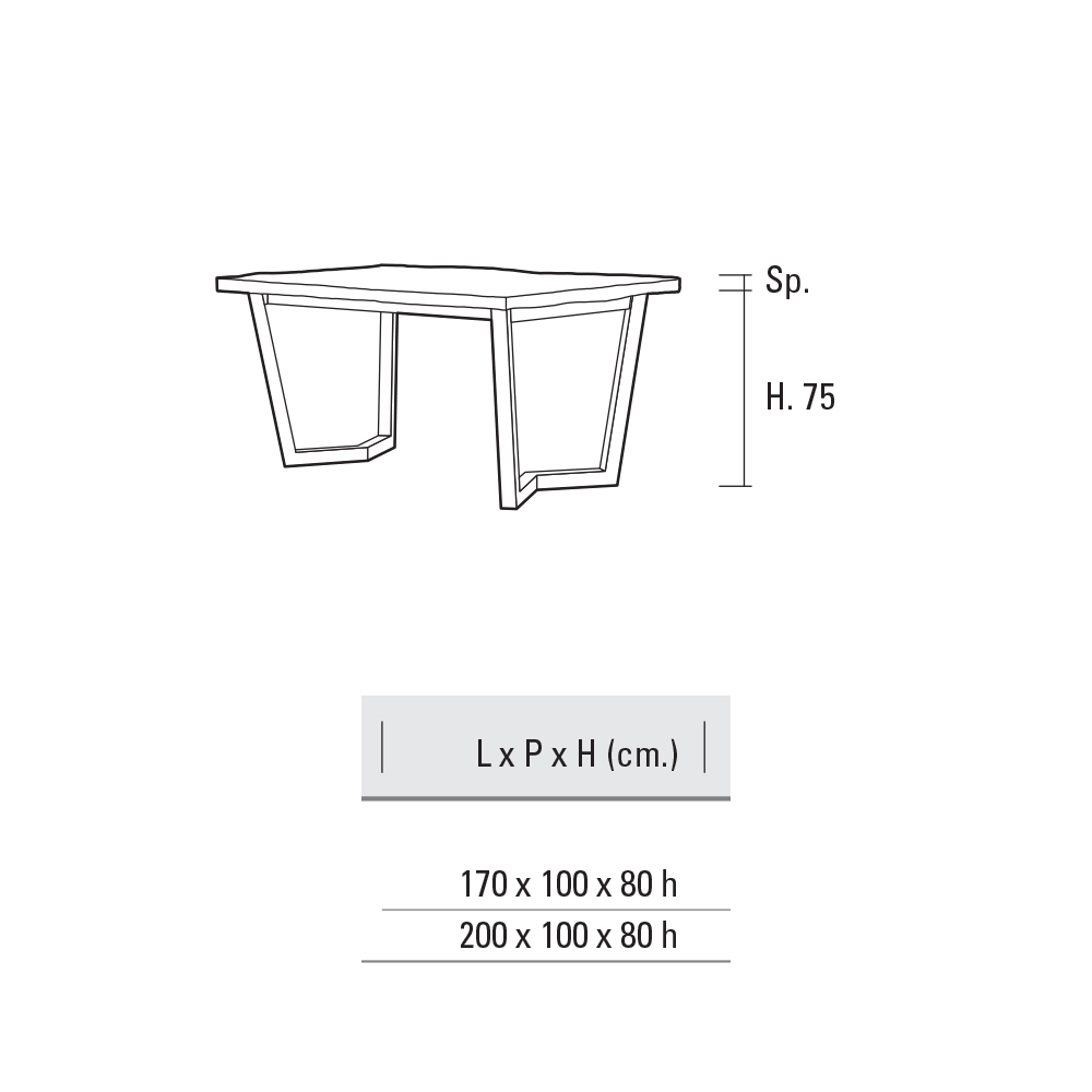 Das raffinierte und avantgardistische Design dieses Produkts wird durch die besondere Struktur der Beine einzigartig, die diesem Tisch einen schlanken und sonnigen Stil verleihen und die Platte fest und sicher stützen und so ein widerstandsfähiges und funktionales Endprodukt bieten. Die imposante Ästhetik des Holzes verbindet sich perfekt mit der modernen und funktionalen Note des Metalls und schafft so eine moderne und einladende Einrichtungslösung.