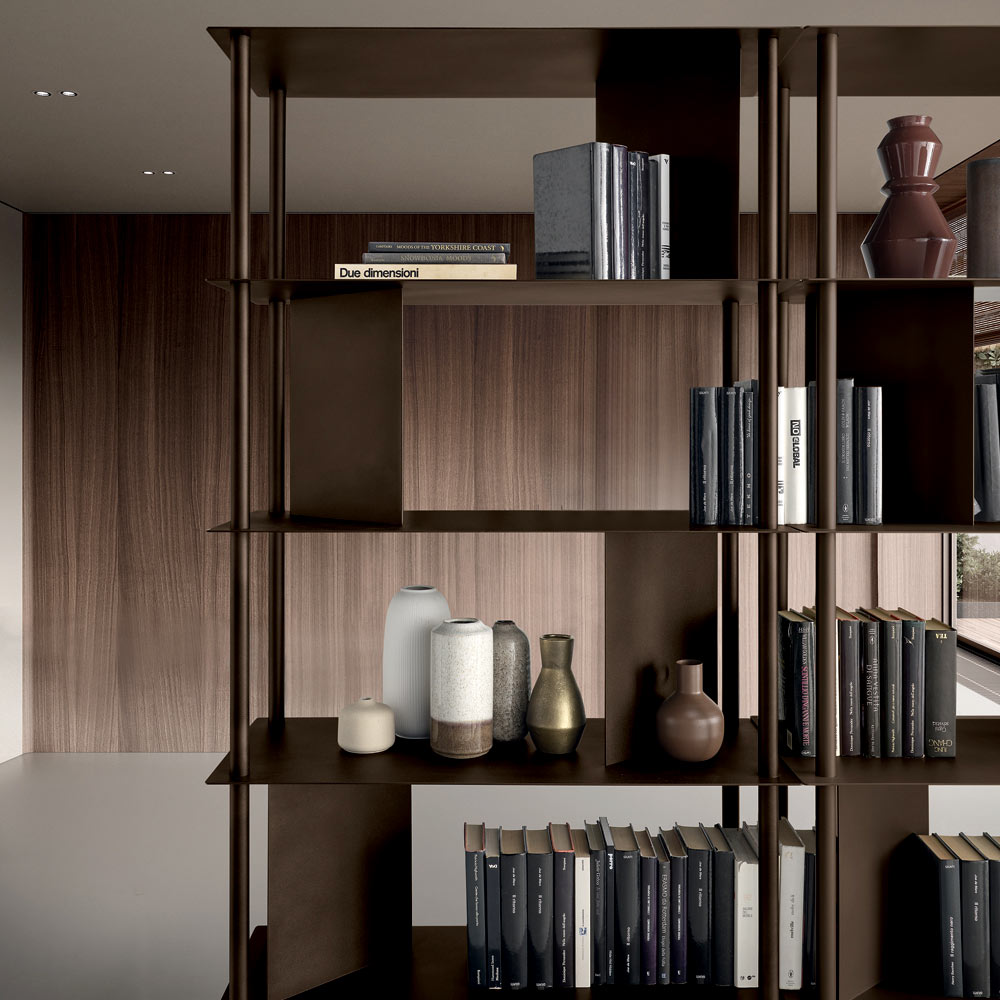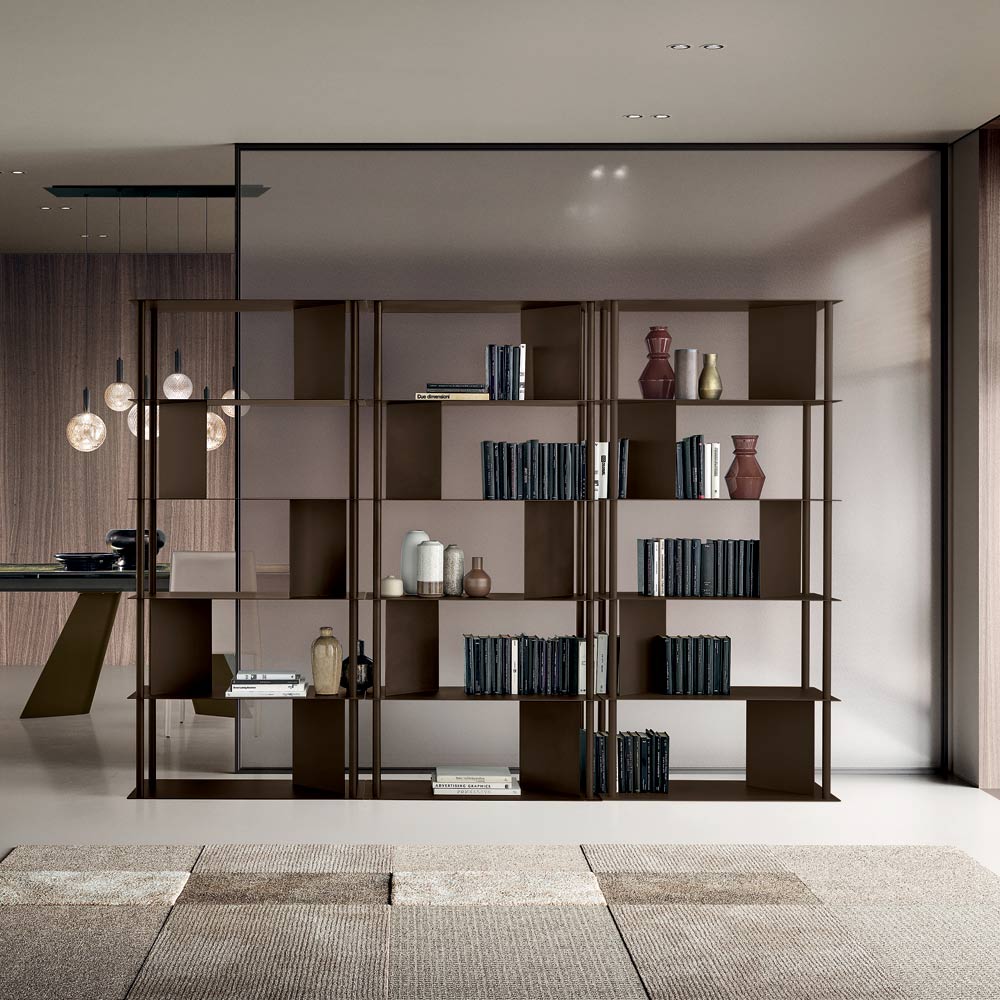 Ein elegantes, in Italien gefertigtes Designer-Bücherregal , ideal für die stilvolle Einrichtung von Wohnzimmer , Arbeitszimmer oder Flur. Sein modernes Design besticht durch seine leichte und dennoch architektonisch anmutende Struktur und verleiht jedem Raum Ausgewogenheit und Persönlichkeit.