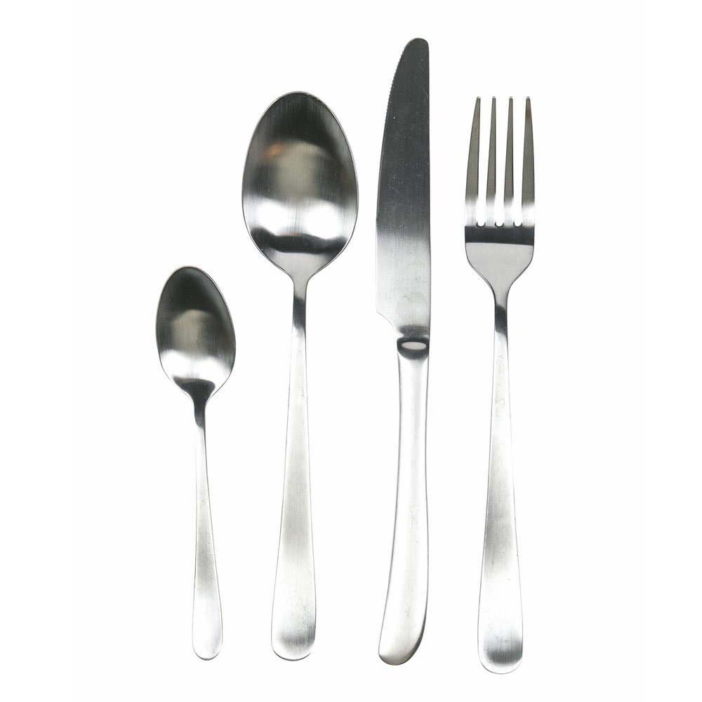Abgerundetes Design Besteckset aus mattem Stahl 24 teilig.
