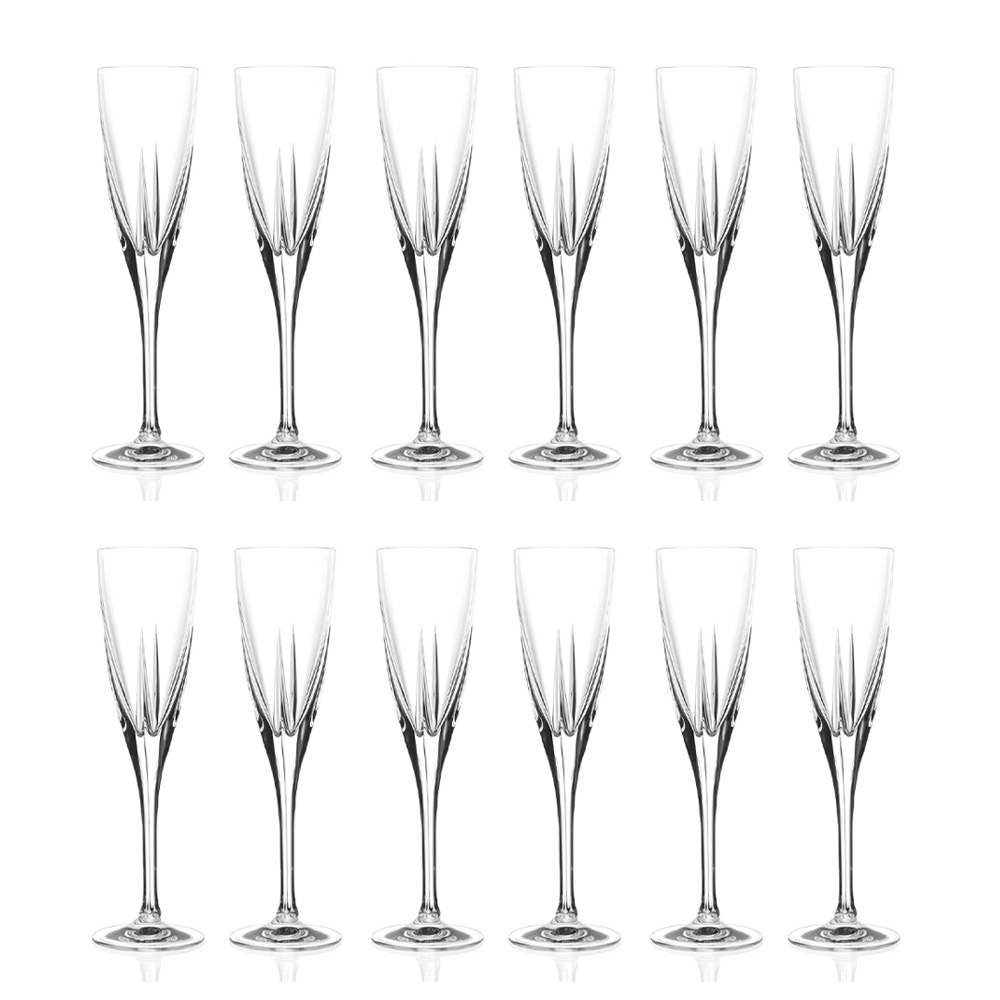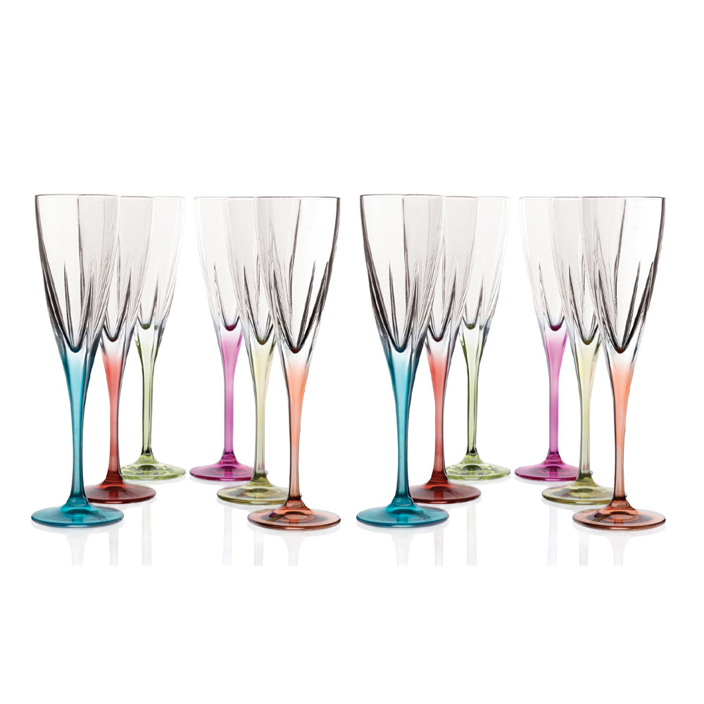 Set Flötengläser aus transparentem oder farbigem Öko-Kristall, 12-teilig made in Italy.