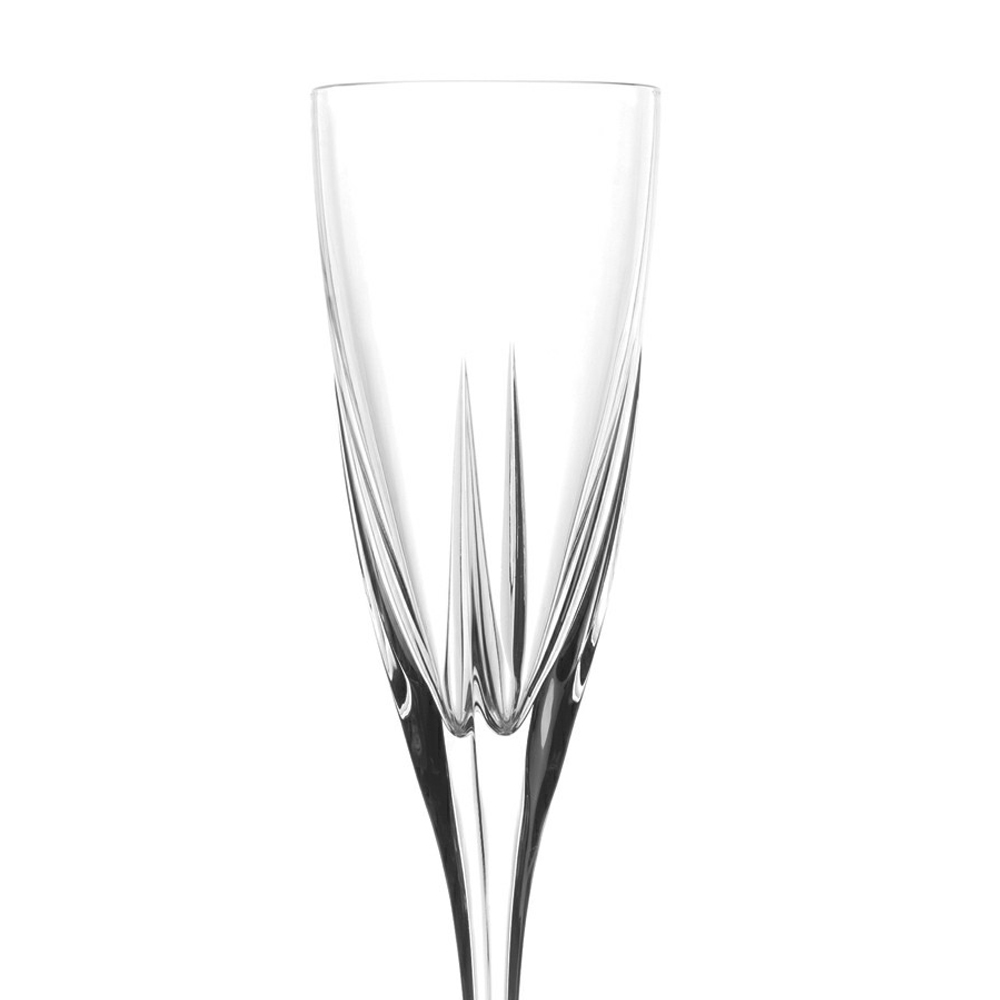 Dieses Set aus Flötengläsern für Sekt und Champagner zeichnet sich durch ein vom Konzept des vitruvianischen Menschen von Leonardo da Vinci inspiriertes Design aus, das den Kreis des Mundes mit dem Quadrat des Bodens verschmilzt.