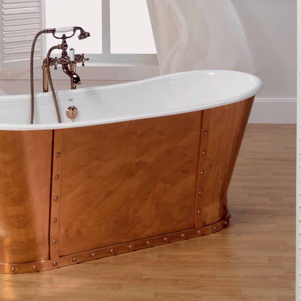Design kupferbeschichtete Badewanne aus Gusseisen Freistehende Badewanne komplett aus Gusseisen auf dem Boden. Innen 2 mm Titan emailliert und außen verkupfert. Badewanne, die die Spitze des Luxus darstellt!