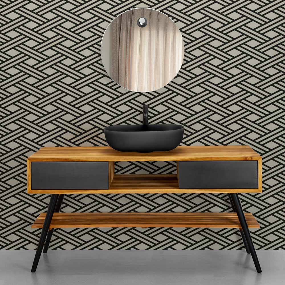 Diese Ergänzung zum Bereich Das Badezimmer zeichnet sich durch die Reinheit der Linien und die hochfeine Verarbeitung aus und möchte das zeitgenössische Design der Verarbeitung von recyceltem Holz unterstreichen, das im Inneren des Hauses weiterlebt und exotische Düfte und raffinierte Empfindungen mit sich bringt. Sein Design garantiert große und praktische Räume für die Organisation Ihrer Umgebung und trägt dazu bei, den Badezimmerbereich luftiger erscheinen zu lassen.Es ist ein Projekt, das durch Geometrien von horizontalen Linien und leuchtenden Farben konzipiert wurde, um auch aus ästhetischer Sicht exklusive Einrichtungslösungen zu schaffen.