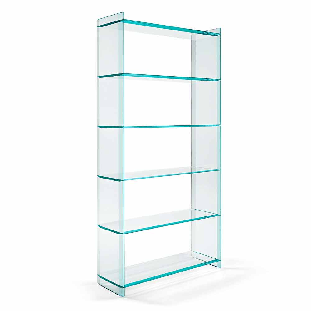 Freistehendes Bücherregal aus extra klarem Glas mit 6 Regalen Made in Italy - Ramen