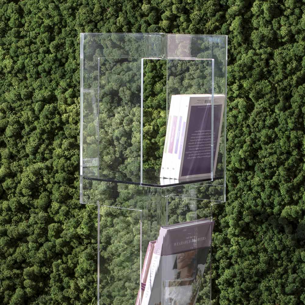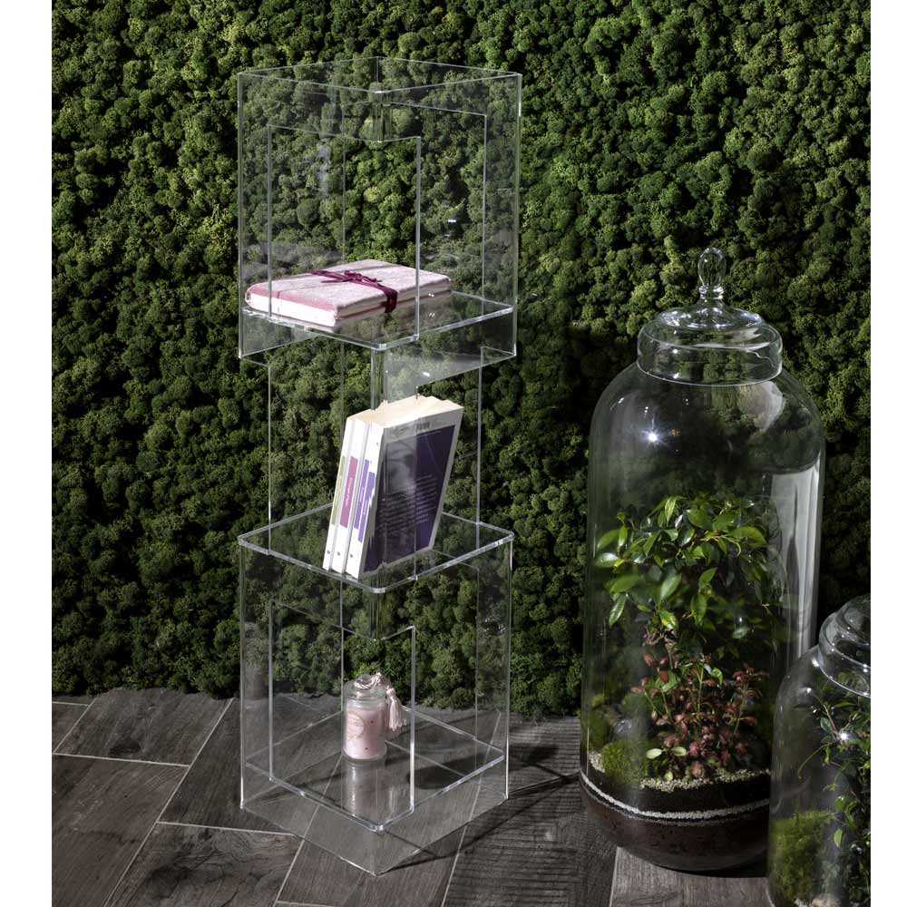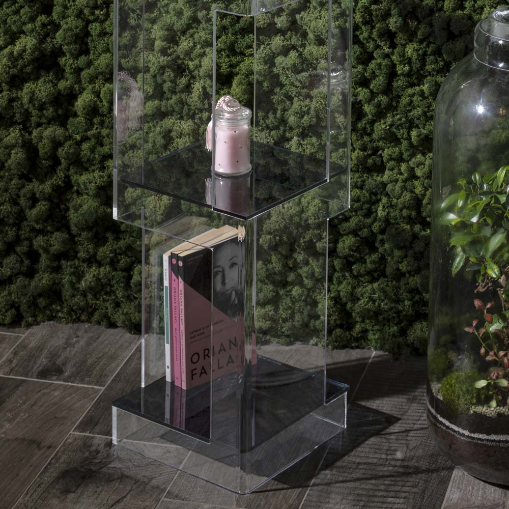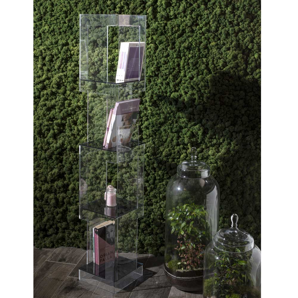 Freistehendes Bücherregal aus Acrylkristall 2 Ausführungen und 2 Größen made in Italy.