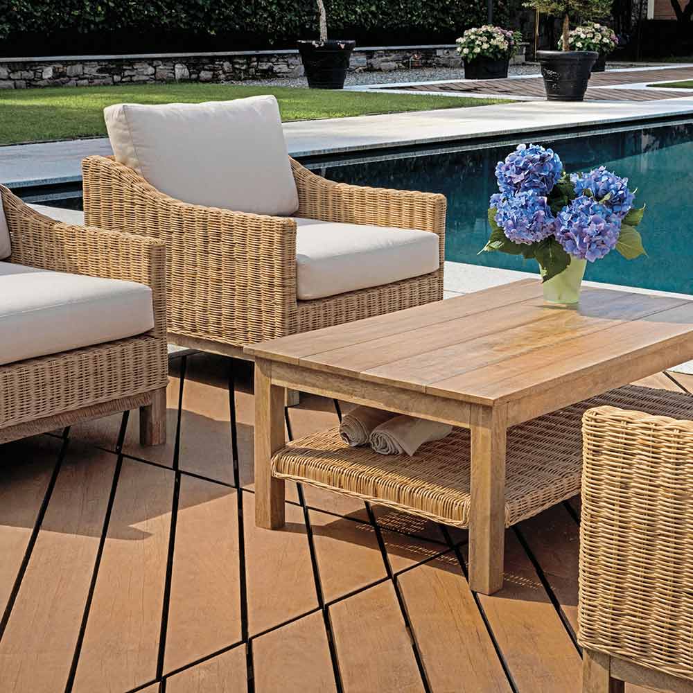 Ideal für alle, die sich ein elegantes, komfortables und natürliches Wohnzimmer im Freien wünschen, das handwerkliches Können, Qualität und Stil in einer einzigen Einrichtungslösung vereint.