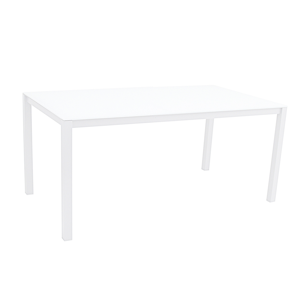 Garten-Esstisch mit epoxidpulverbeschichteter Aluminiumstruktur und rückseitig lackierter Glasplatte
