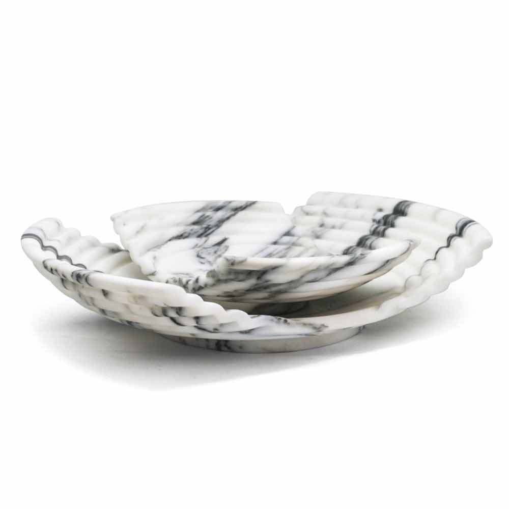 Gebogenes dekoratives Designtablett aus hochwertigem Arabeskenmarmor Made in Italy.