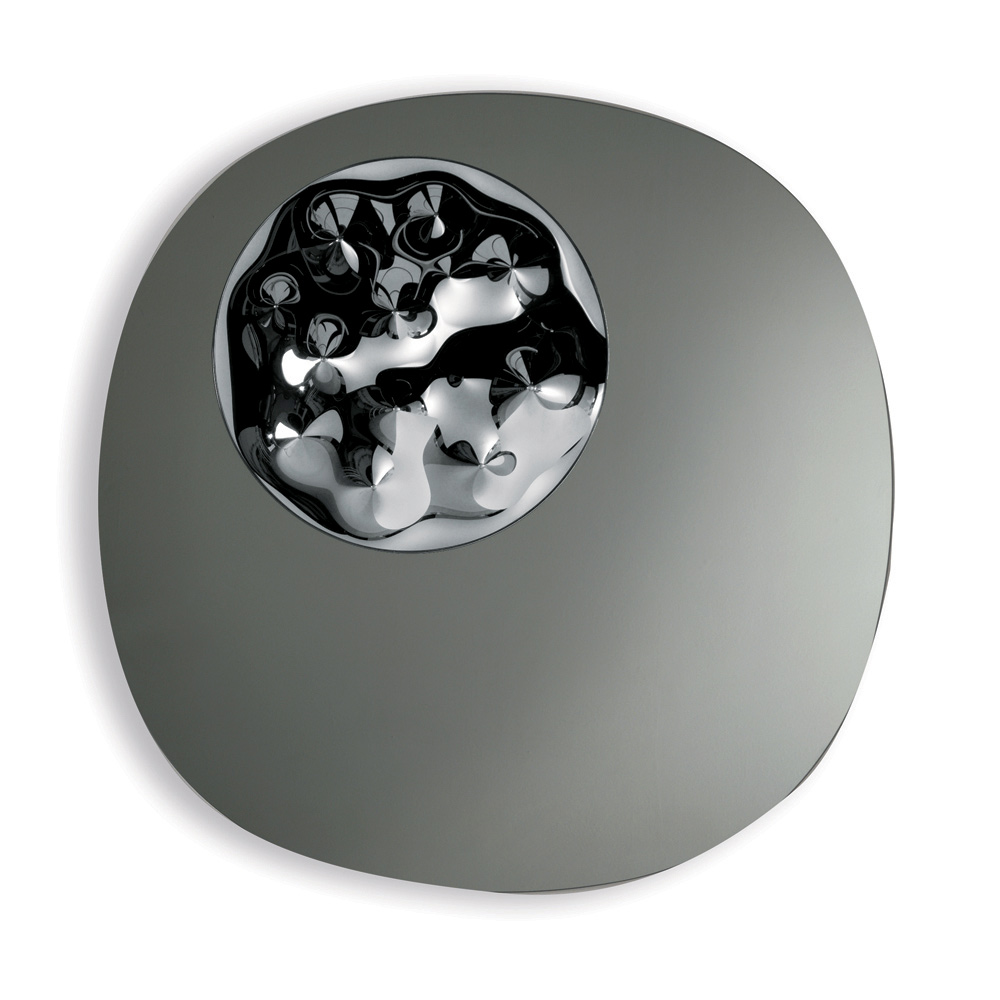 Geformter Designerspiegel mit kreisförmigem Einsatz in Wellenglas