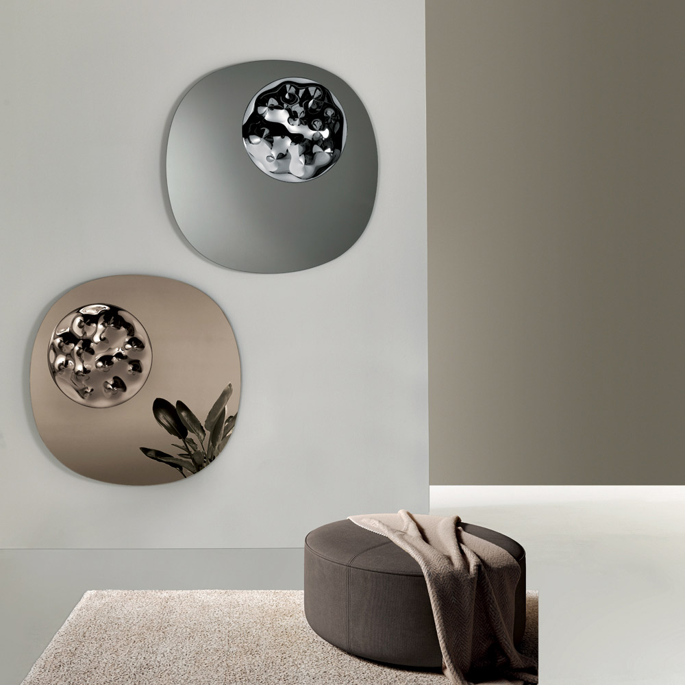 Dank des rückseitigen Rahmens lässt sich der Spiegel in vier verschiedenen Positionen anbringen , sodass Sie das dekorative Element optimal an den Stil Ihres Raumes anpassen können. Erhältlich in eleganten Ausführungen in Bronze und Rauchgrau , ist er das perfekte Einrichtungsaccessoire für moderne und stilvolle Räume.