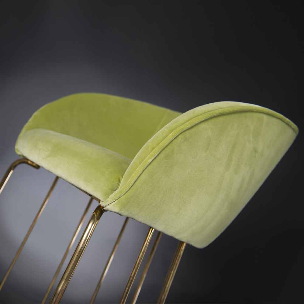 Hoher Hocker, ideal für Bar- oder Küchentheken, vollständig in Italien hergestellt, mit Metallstruktur mit 24 Karat Gold-Finish, gepolsterter Sitz- und Rückenpolsterung mit grünem Samt. Eine Idee von eleganten Möbeln , die sich durch die Verwendung einfacher Linien und Formen auszeichnen , die eine Ergänzung mit einer klassischen und besonders modernen Ästhetik zum Leben erwecken , die es schafft , jeden Wohnbereich oder Objektbereich dank einer zeitgenössischen und originellen Note zu revolutionieren . Was das Design auszeichnet, ist ein raffinierter Stil zusammen mit einer starken funktionalen Seite, die durch eine 100% Made in Italy Verarbeitung und die Verwendung hochwertiger Rohstoffe erzielt wird, die ein Produkt von hoher Qualität und Wertigkeit gewährleisten. Seine exklusive Ästhetik passt sich jeder stilistischen Situation an und schafft eine perfekte Harmonie mit den Elementen, die es umgeben, für ein kreatives und avantgardistisches Ergebnis.