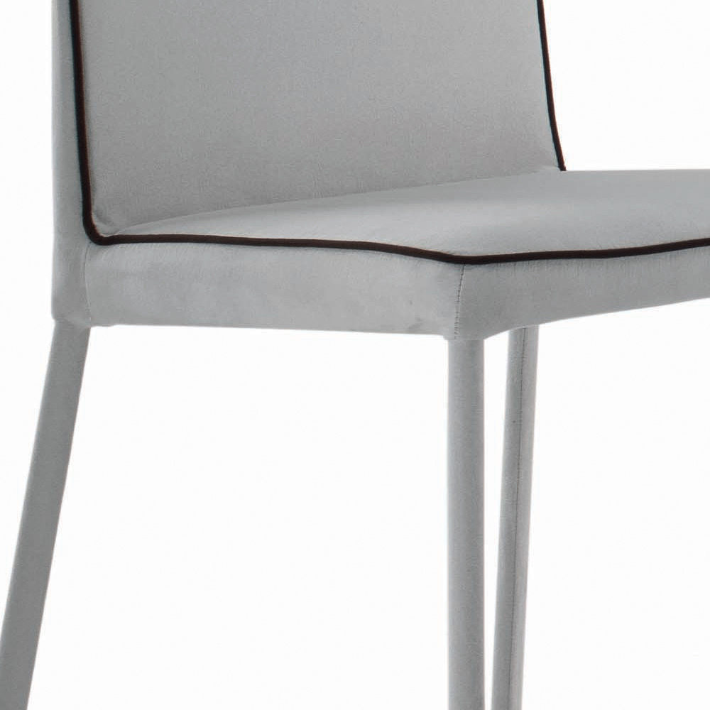 Wohnzimmerstuhl mit Sitz und Rückenlehne aus beschichtetem Stahl und lackierten Beinen. Wesentlichkeit und Minimalismus sind die charakteristischen Merkmale dieses zeitgenössischen Einrichtungsstils, der für Liebhaber schlichter, aber optisch wirkungsvoller Möbel konzipiert ist. Die Schönheit und Leichtigkeit der Formen sind seine größten Stärken, die es ihm ermöglichen, sich in jede Situation zu integrieren und dabei stets einzigartig und originell zu bleiben.