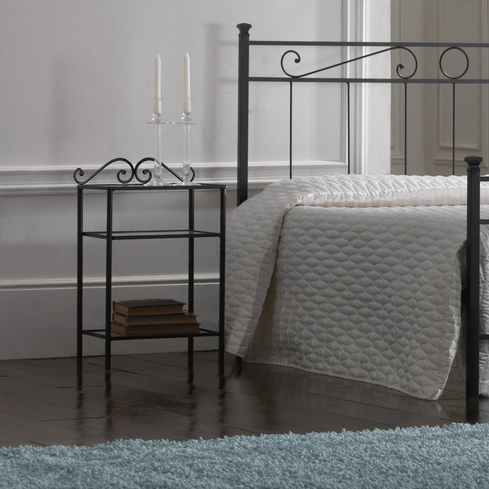 Doppelbett mit Kopfteil aus Eisen und 2 Nachttischen Made in Italy