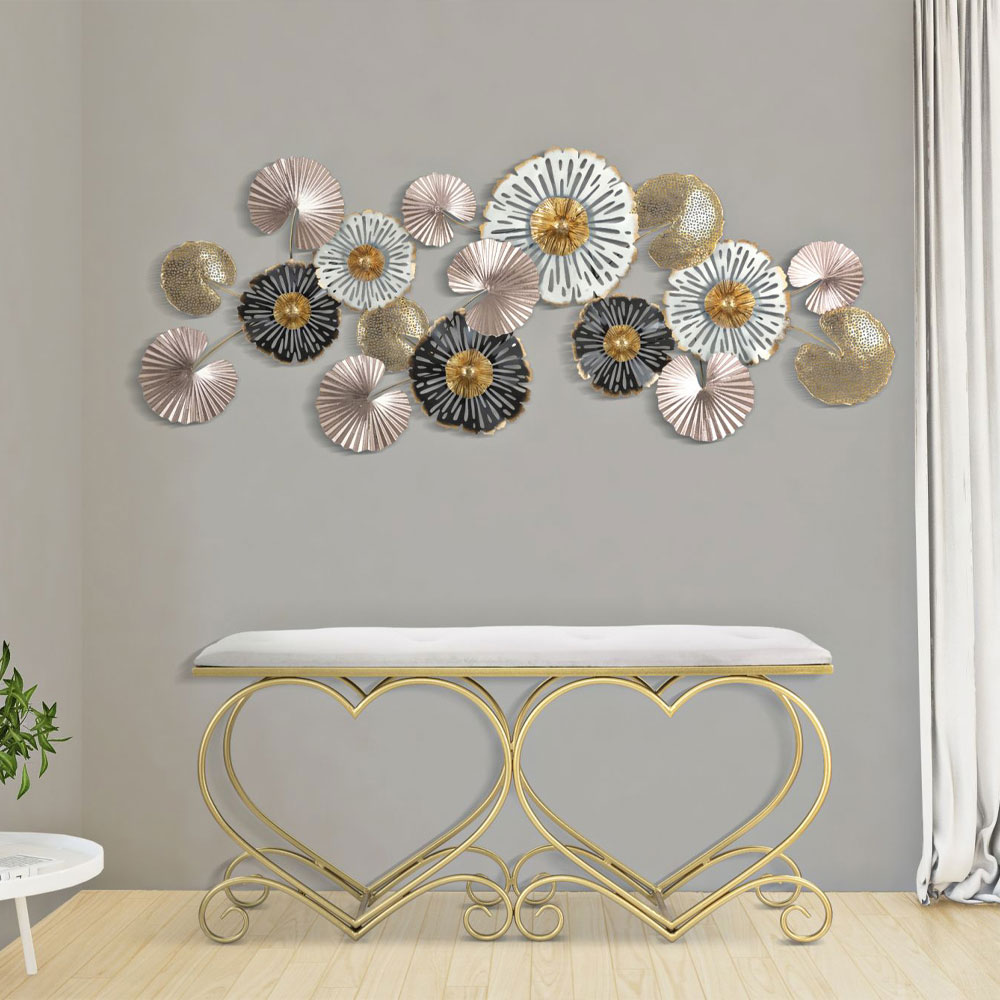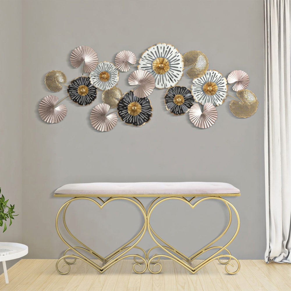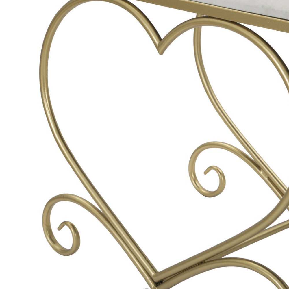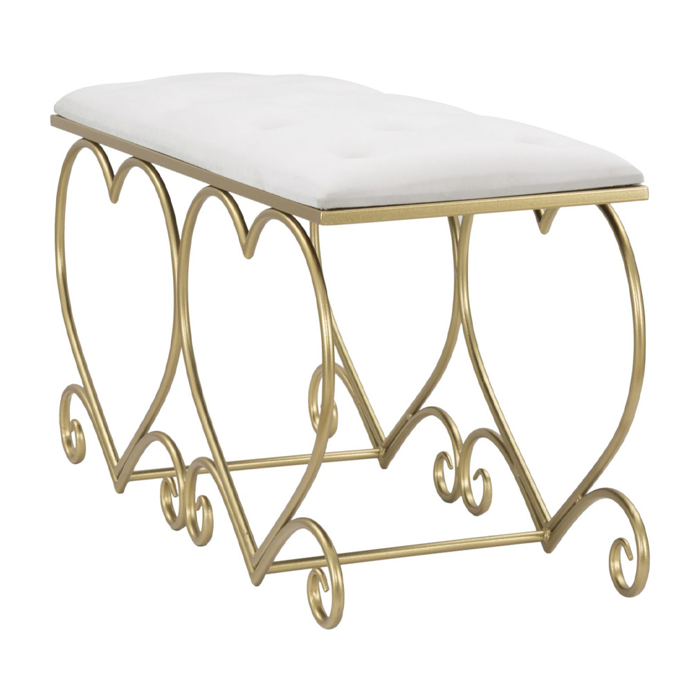 Moderne Bank aus Eisen mit goldenem Finish mit Sitzfläche aus Schwamm gepolstert und mit Stoff bezogen . Ein Möbelstück mit verträumter Seele , gekennzeichnet durch die besondere Herzform des Sockels , die die Ästhetik bereichert und sie einzigartig und elegant macht . Die wundervolle Kombination der gewählten Farben vervollständigt den endgültigen Look und macht diese Bank zu einem idealen Dekorationselement für diejenigen, die einen romantischen Stil suchen und ihre Wohnräume gerne mit Objekten mit einer starken, raffinierten Persönlichkeit ausstatten.