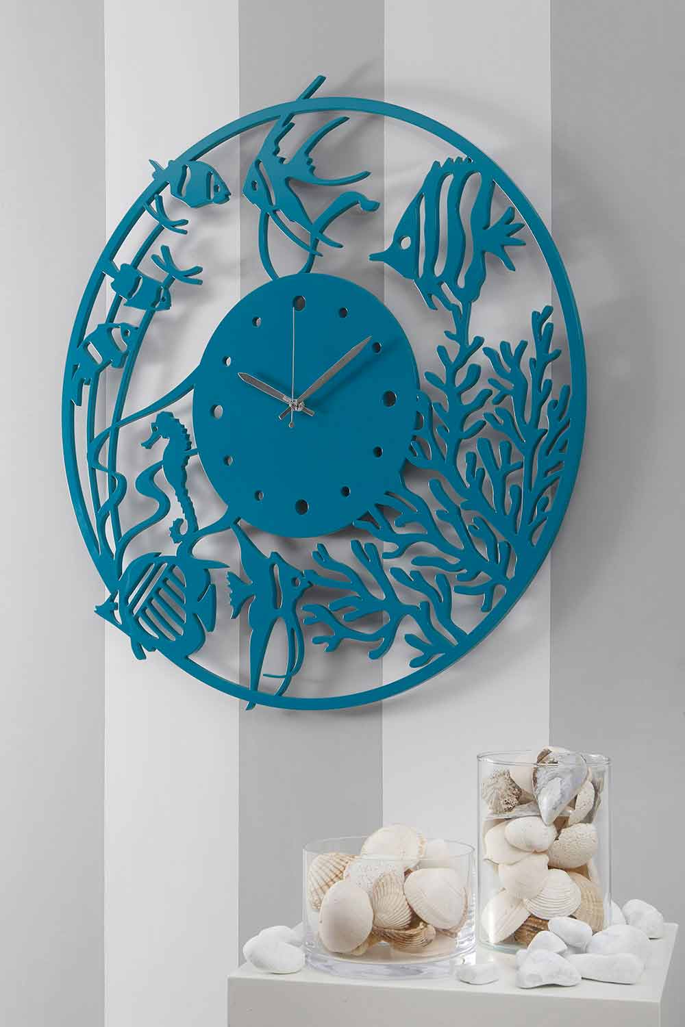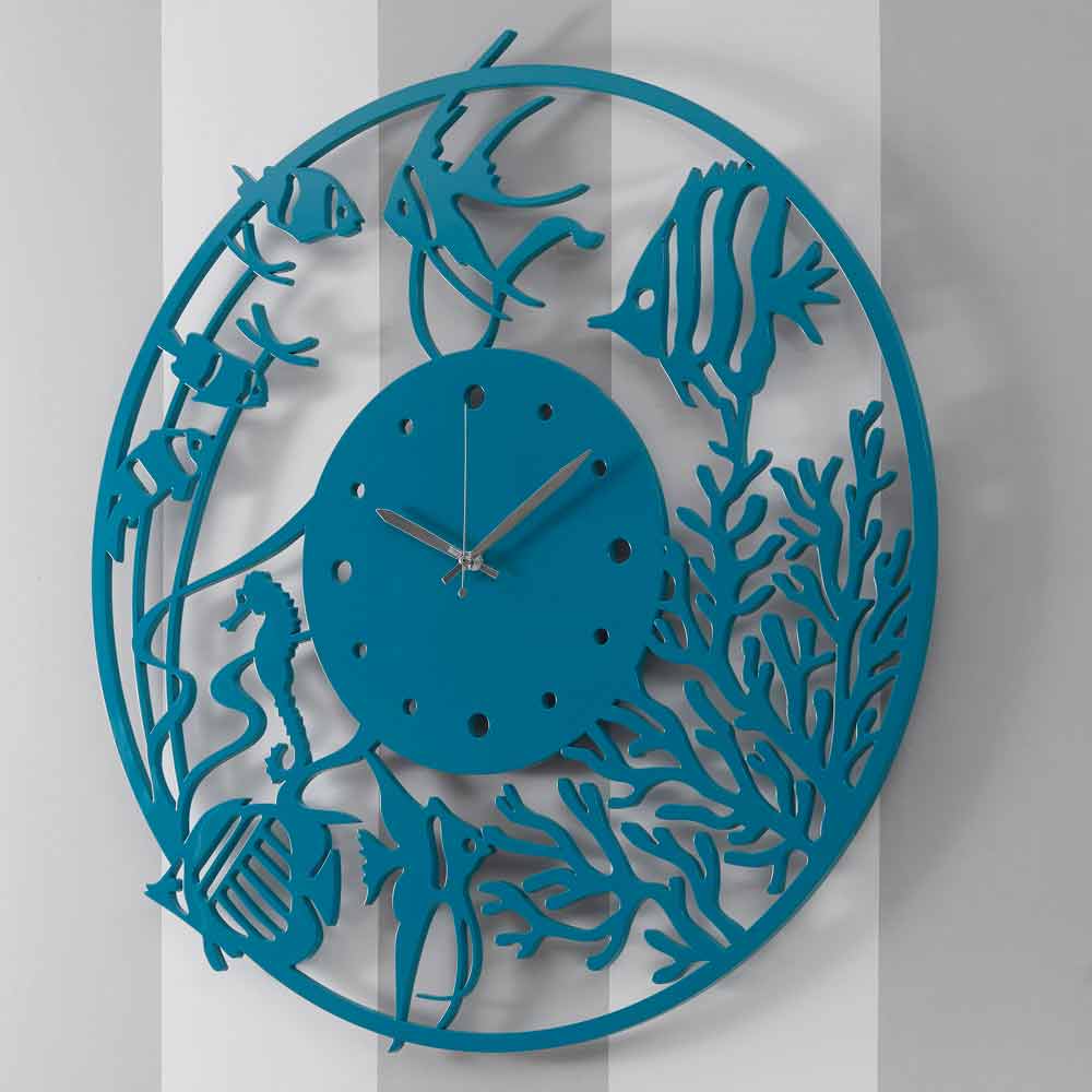 Spielen Sie mit Ihrer Fantasie und dekorieren Sie die Wand der Küche oder des Wohnzimmers auf schöne Weise mit der großen runden Wanduhr, die ein Aquarium und das Leben des Meeresbodens darstellt.
