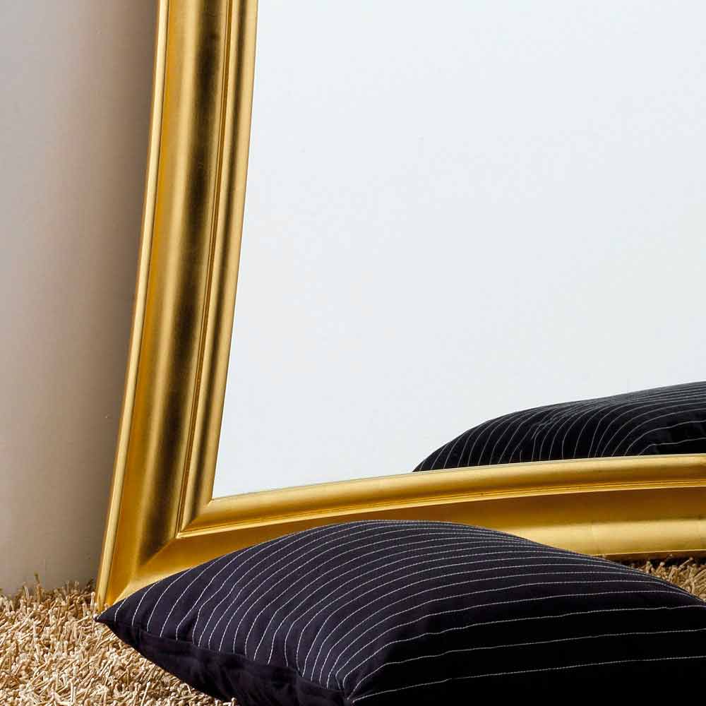 Der Spiegelrahmen besteht aus glatten Holz, wurde im antiken Blattgold veredelt. Der Spiegel selbst besteht aus einer hochwertigen Kristallspiegelfläche und weist eine Dicke von Dicke von 4 mm auf. Made in Italy. Inklusive Wandhalterung ! Der Spiegel kann vertikal als auch horizontal aufgehangen werden.