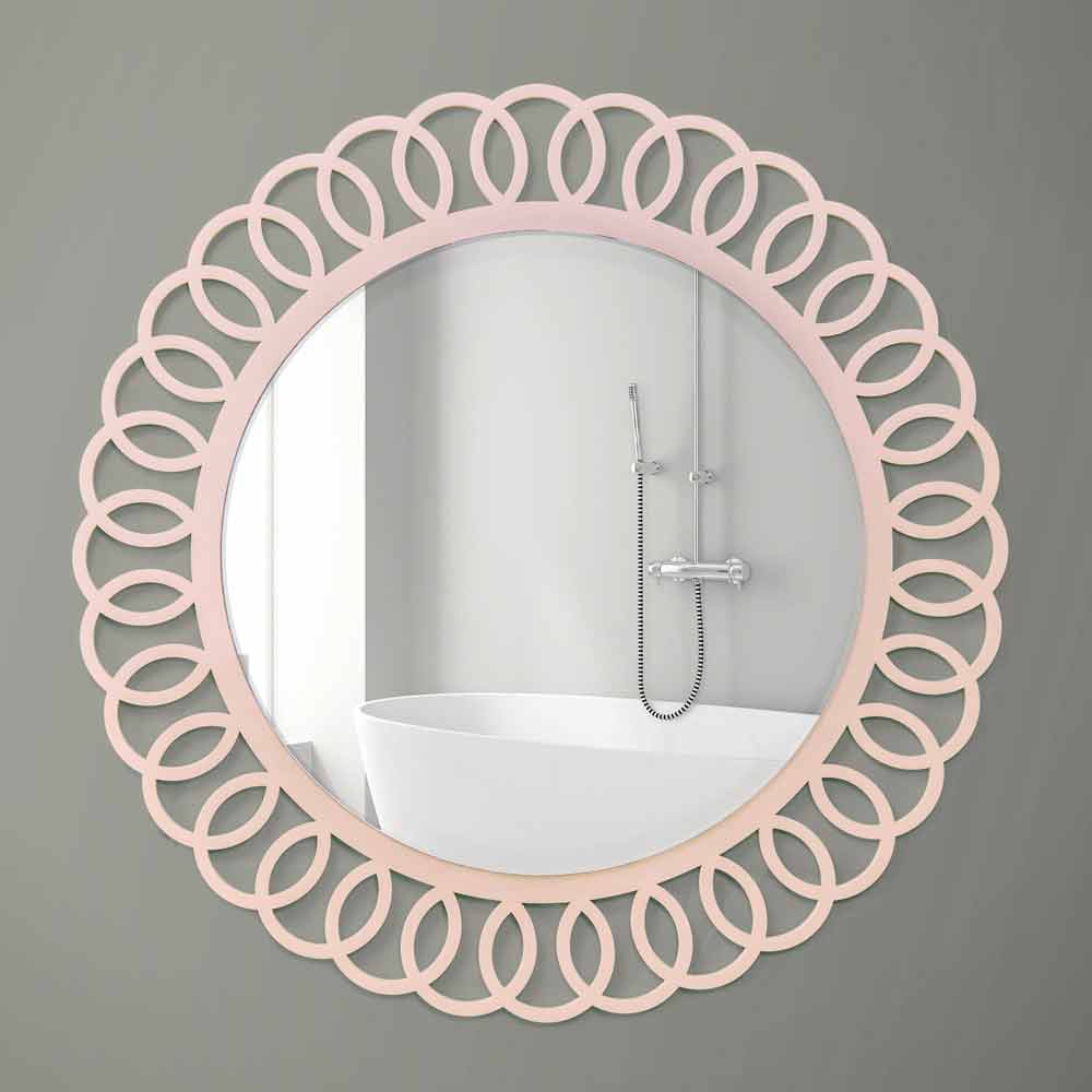 Runder Wandspiegel mit rosa Holzrahmen mit modernem Design made in Italy.