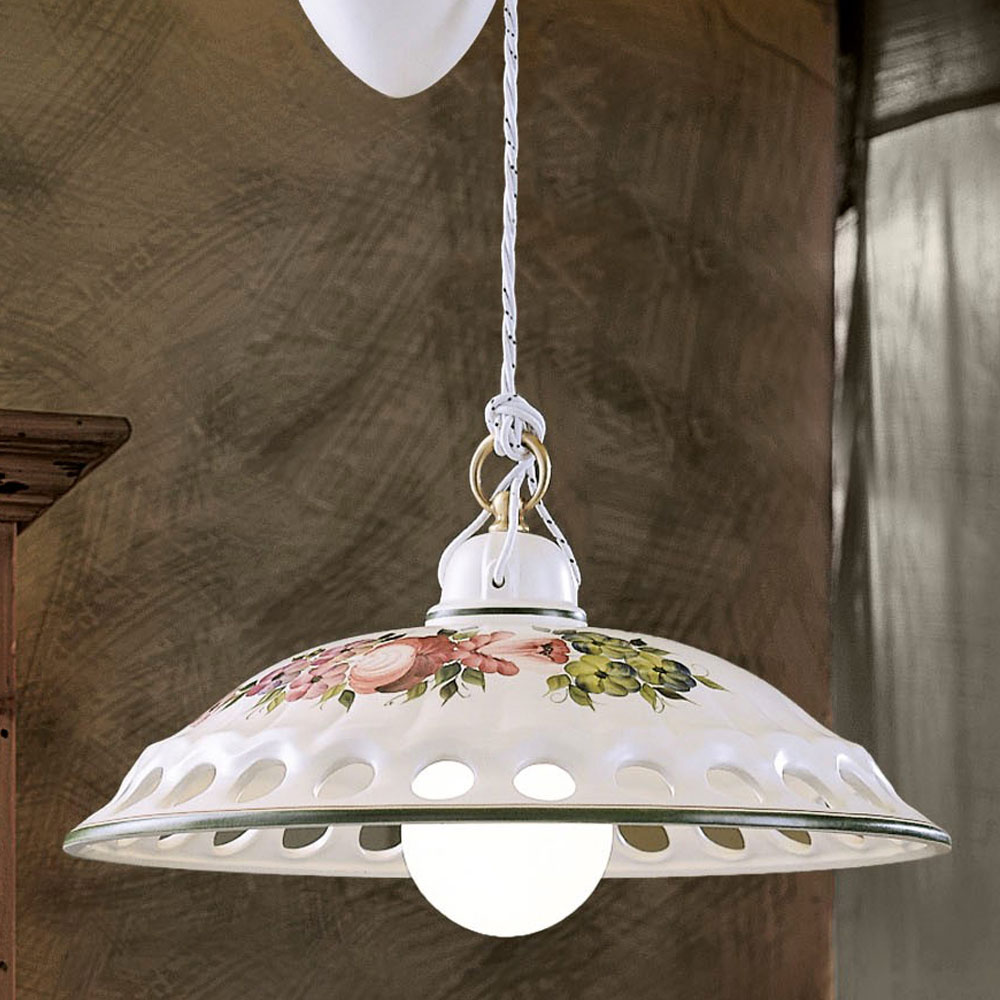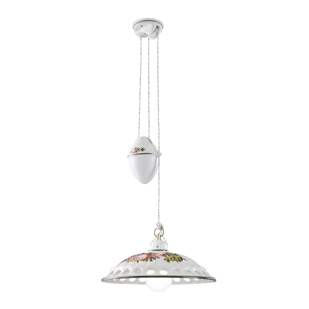 Diese Pendelleuchte mit Gleitschiene Es besteht vollständig aus Metall und handbemalter Keramik mit Blumendekorationen , die das Können und die Geschicklichkeit der Handwerker unterstreichen.