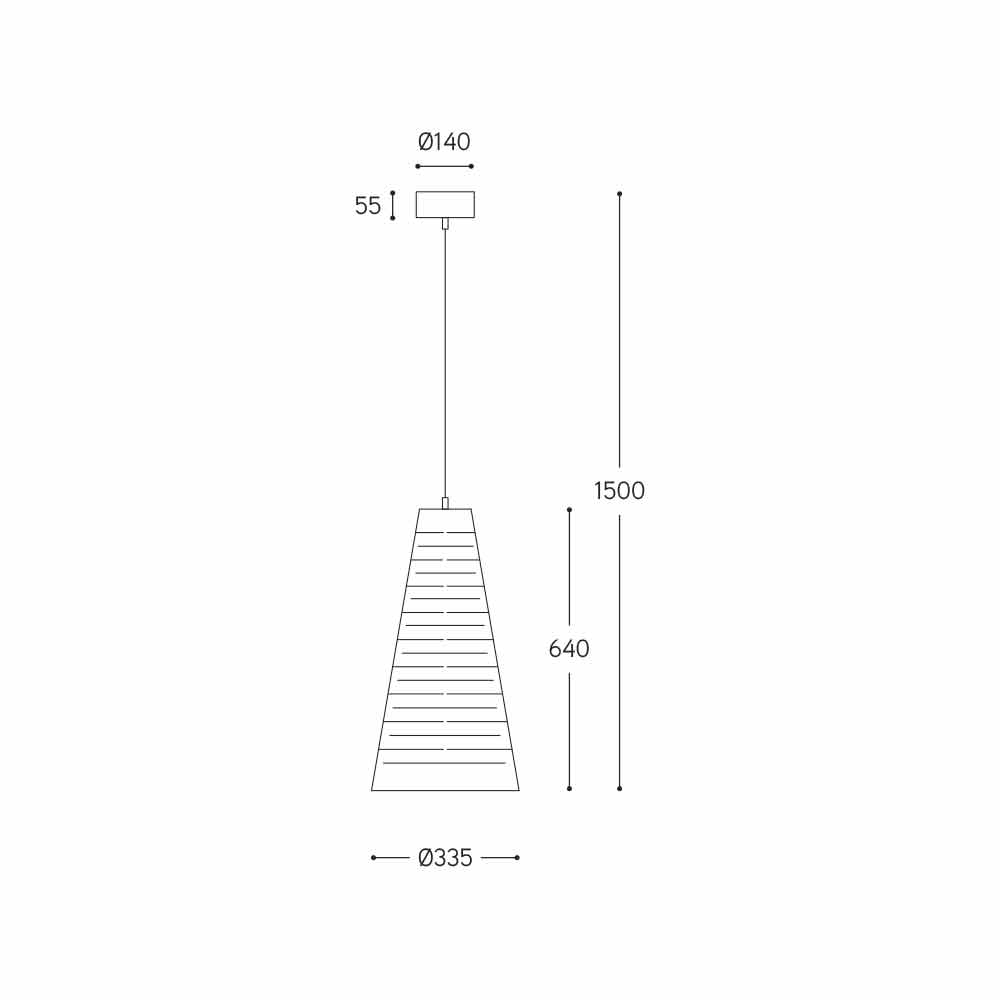 | Lampenmessungen | Durchmesser 335 x H 640 mm; H insgesamt mit Kabel und stieg 1500 mm |