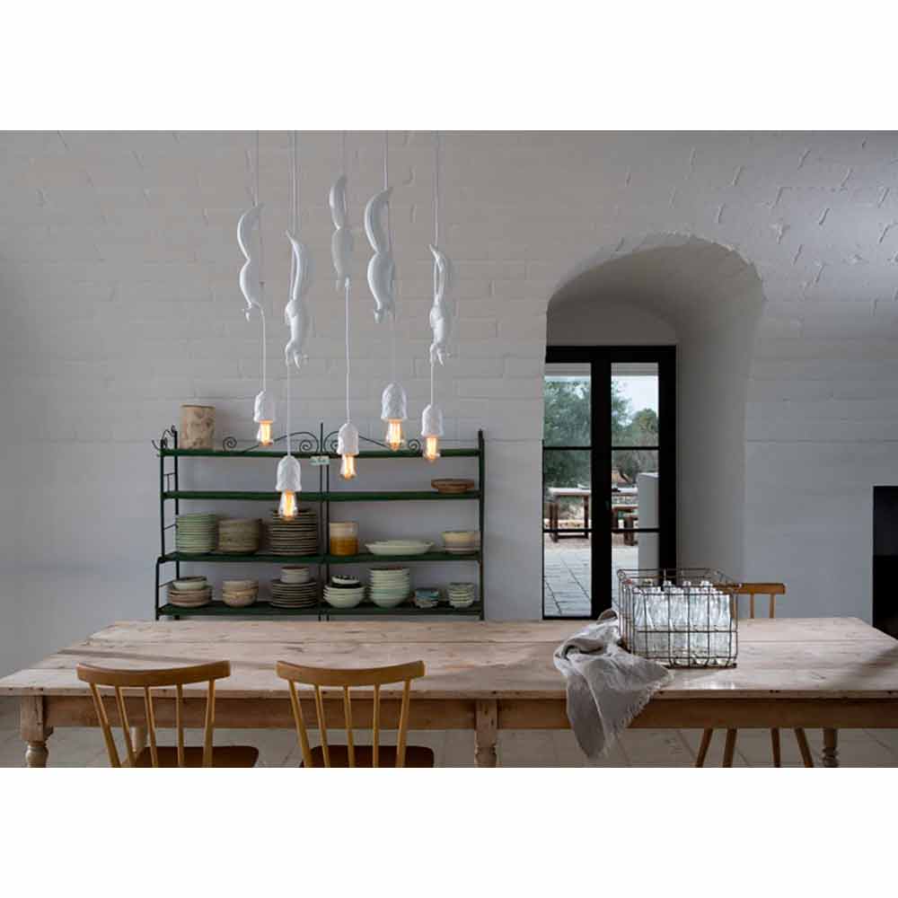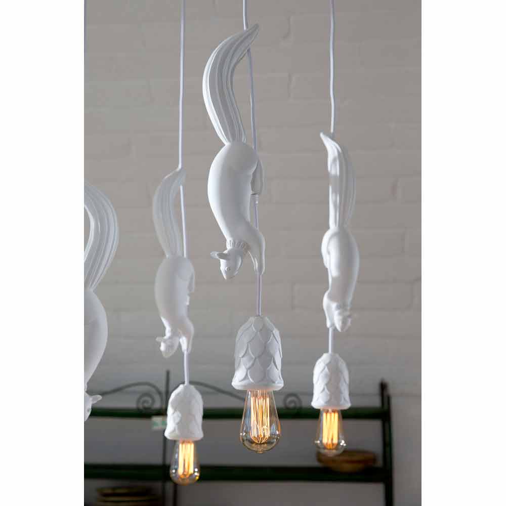 Hängelampe aus mattweißer Keramik mit Eichhörnchen und Eichel von Design made in Italy.