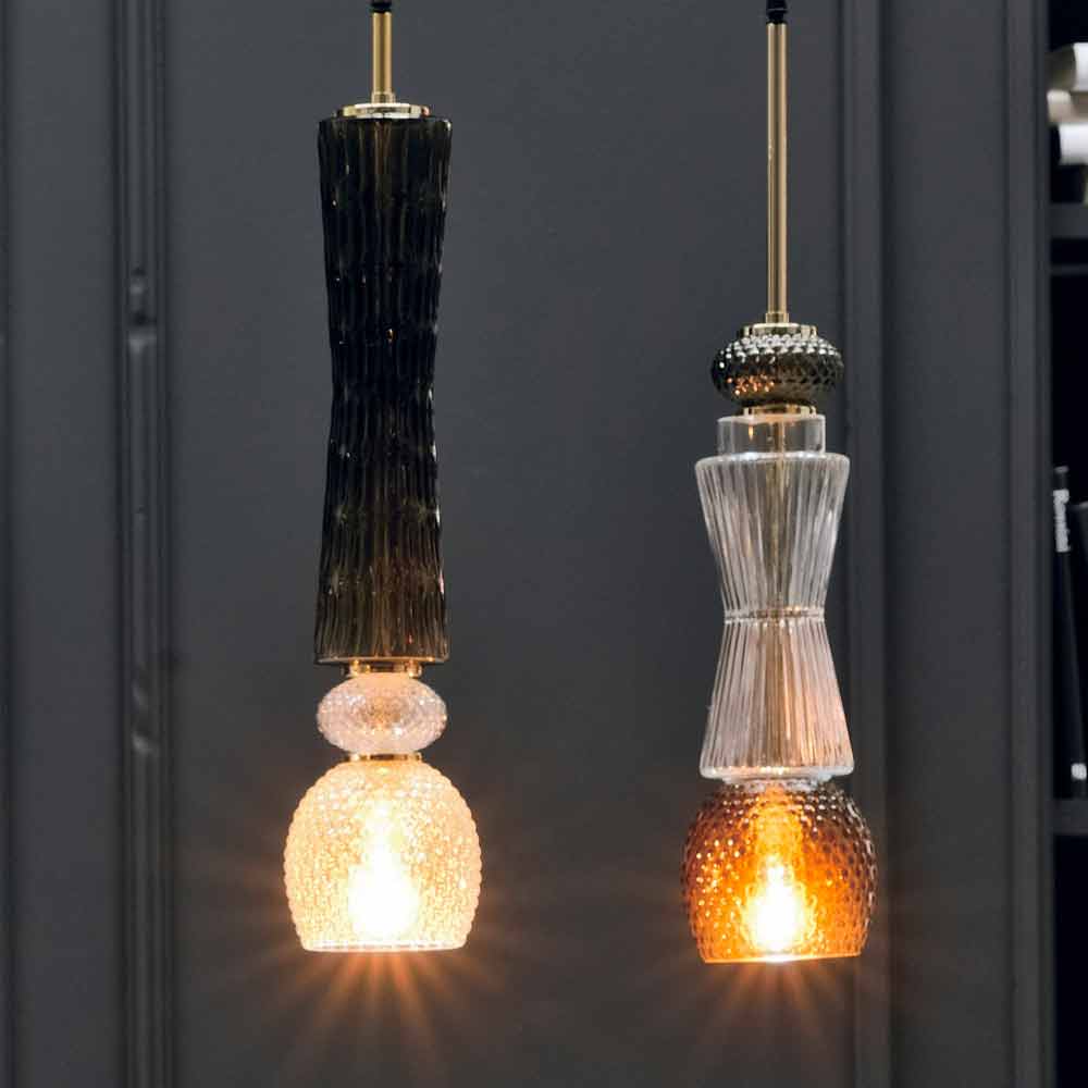 Pendelleuchte aus Muranoglas mit Stoffkabel, Made in Italy.
