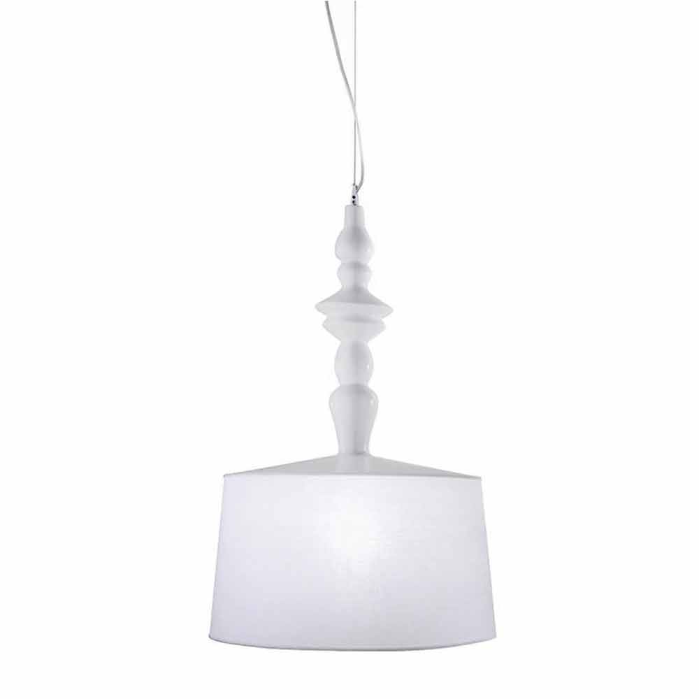Die Lampe ist aus glänzend weiß Keramik als Material, das den Ursprung darstellt, die Formbarkeit, die Schaffung und das führt direkt zu den Ursprüngen unserer Kultur. Lampenschirm aus Leinen.