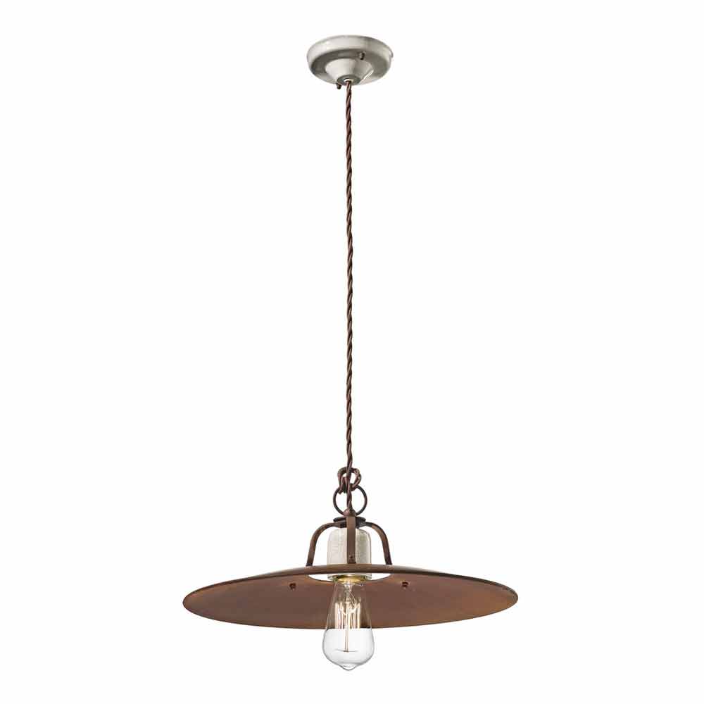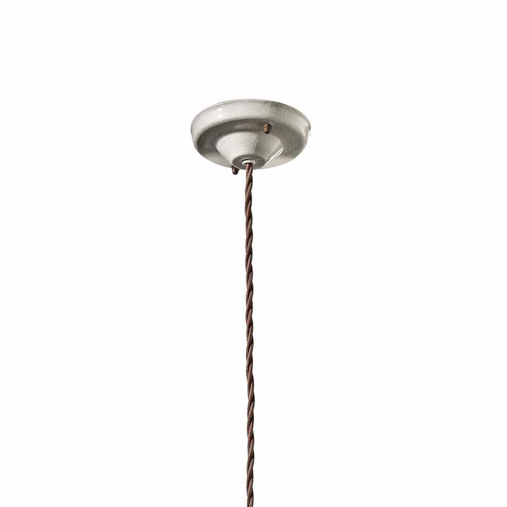 Ferroluce Handgefertigte Pendelleuchte im Industriestil Breite Krone und leicht verstellbare Höhe dank des geflochtenen Kabels, das den industriellen Stil vervollständigt. Details aus mattrostfarbenem Metall und Keramik vervollständigen eine Balance aus vollen und leeren Formen. Es ist vom amerikanischen Landhausstil inspiriert. Diese Lampe mit ihren gedämpften Farben und einem lebendigen Geschmack ist einfach und zeitlos. Reines Licht ohne Abschirmung. Sehen Sie sich die Farbkarte an und geben Sie im entsprechenden Feld den für Sie am besten geeigneten Farbcode an!