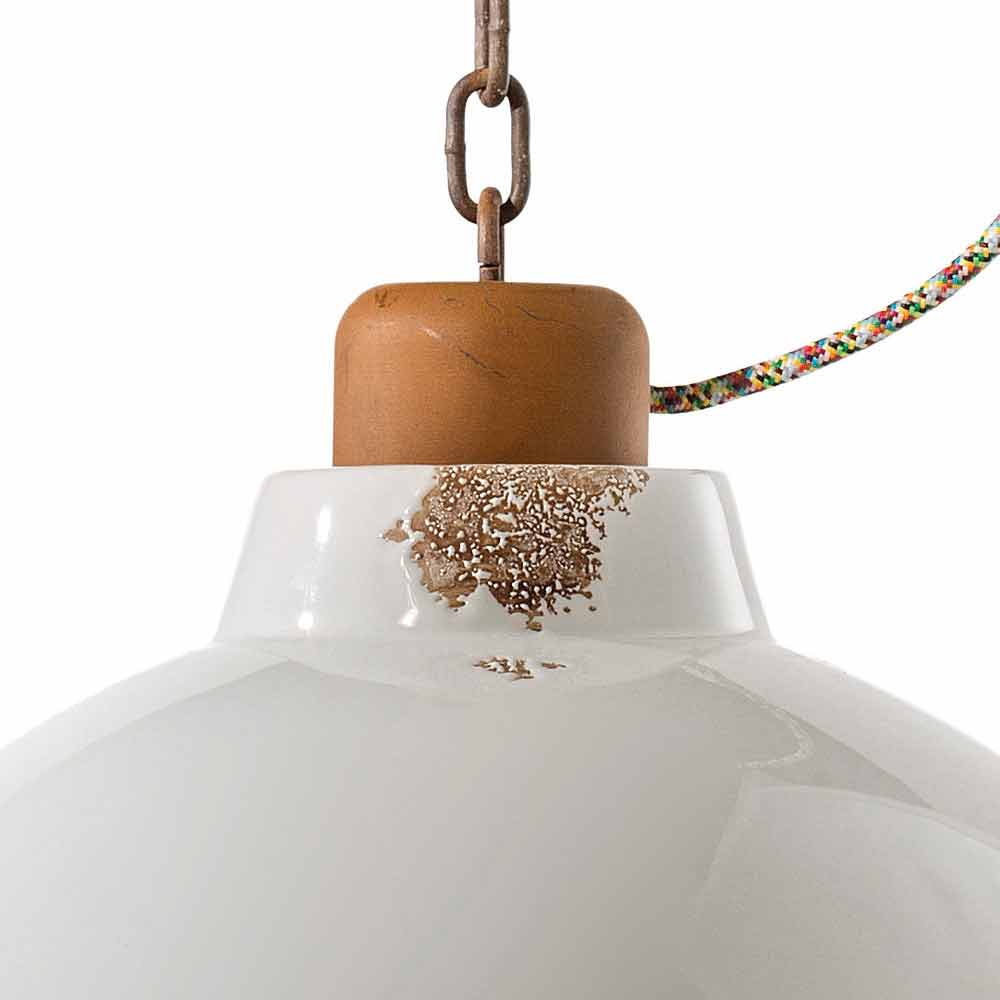 Clara handgefertigte Pendelleuchte im Industriedesign Clara ist eine fantastische Aufhängung in Glockenform und im Vintage-Industriestil, die von erfahrenen Handwerkern in Italien handgefertigt wird. Diese schöne Leuchte besteht aus einer Eisenstruktur mit einem Diffusor aus glänzender Keramik, erhältlich in verschiedenen Farben. Die Besonderheit dieser Leuchte liegt in der handwerklichen Verarbeitung des Keramikdiffusors. Die Keramik ist in der Tat so dekoriert, als ob die Zeit ihren Weg gezeichnet hätte. Die Reproduktion der Erosion der Zeit in Kombination mit den glänzenden Oberflächen verleihen dieser Aufhängung diesen zusätzlichen Wert. Dieser abgenutzte Effekt verleiht Clara einen raffinierten Vintage-Industrial-Stil. Die Metallstruktur verstärkt den antiken Effekt noch mehr. Leuchtende Farben, glänzende Oberflächen und raffinierte Alterungsspuren für ein aktuelles Profil im Gewand eines vergangenen Stils. Diese schöne Aufhängung ist von den Lichtpunkten inspiriert, die zur Beleuchtung in den Laderäumen von Handelsschiffen verwendet werden. Wie die meisten nautischen Objekte, die natürlicherweise einem gewissen Verschleiß unterliegen, zeigt auch diese Lampe die Zeichen der Zeit. Ideal für die Dekoration eines Landhauses im englischen Stil. Diese Aufhängung, die für Umgebungen mit einer einhüllenden Atmosphäre geschaffen wurde, kann dank eines einzigartigen und originellen Designs die anspruchsvollsten Anforderungen erfüllen. Ein Design, das sich dem Luxus widersetzt, aber harmonisch mit ihm koexistiert. Design, das die Wesentlichkeit des Gebrauchs bewahrt und mit einer feinen Balance zwischen Formen und Tönen beruhigt. Clara erweckt ein reines Licht ohne Abschirmung zum Leben. Es sind diese einfachen und zarten Formen, die die Aufmerksamkeit auf sich ziehen und die Clara in die Lage versetzen, sich an jedes Dekor anzupassen, vom einfachsten und minimalistischsten bis zum klassischsten, wodurch ein zarter Kontrast entsteht. Bringen auch Sie einen Hauch von Design in Ihr Zuhause! Kleine Details für große Wirkung mit antikem Flair! Lampe in verschiedenen Ausführungen erhältlich. Überprüfen Sie die Farbkarte und geben Sie den Code der gewünschten Ausführung in das entsprechende Feld ein!
